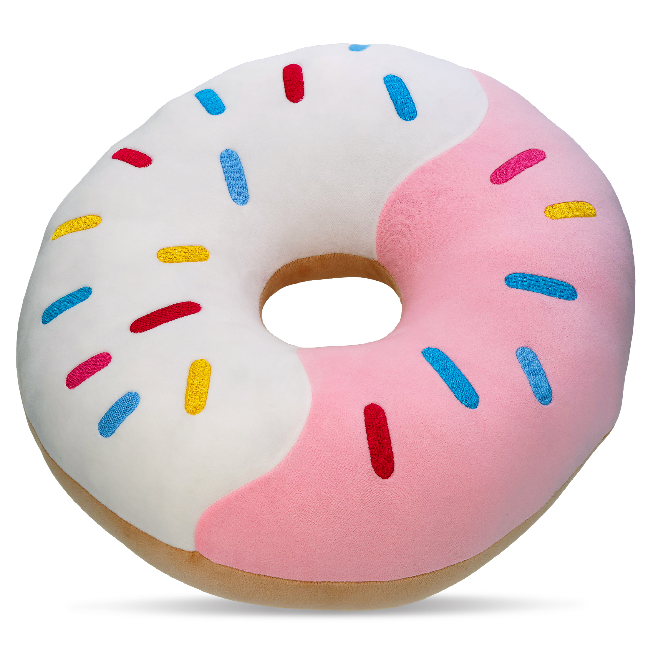 The Snug-Mooshies Large Donut Plush Pillow is designed to bring comfort and playful style to everyday indoor spaces. Featuring a soft, rounded donut shape, this plush pillow offers a cozy surface for resting, lounging, or relaxing throughout the day. Its generously sized pillow-style design makes it easy to hug, lean against, or use as a cushion while reading, watching shows, or unwinding at home. Crafted with a plush exterior and smooth polyester fabric, the donut pillow provides a soft, squishy feel that remains comfortable during extended use. The embroidered icing and sprinkle details add visual texture while keeping the surface gentle and suitable for everyday handling. The lightweight cushioning inside delivers a supportive yet flexible structure that works well on beds, couches, floor seating areas, or reading corners. This stuffed donut plush pillow fits naturally into bedrooms, playrooms, dorm rooms, or lounge spaces. Its food-inspired design adds a fun decorative accent while still functioning as a practical comfort pillow. The wide shape allows it to be displayed on shelves or seating areas when not in use, making it both a functional and decorative addition to indoor decor. Made from soft polyester materials, the Snug-Mooshies Stuffed Donut Plush Pillow is constructed with durable stitching for regular use. The soft surface is easy to maintain—simply wash with cold soapy water and allow it to air dry to keep it fresh. Designed for kids, teens, and adults, this plush donut pillow offers a cozy way to relax, rest, or decorate with comfort in mind. Includes one DolliBu Snug-Mooshies Donut Plush Pillow measuring approximately 18Lx17Wx5.5H inches, intended for indoor use and everyday enjoyment.
