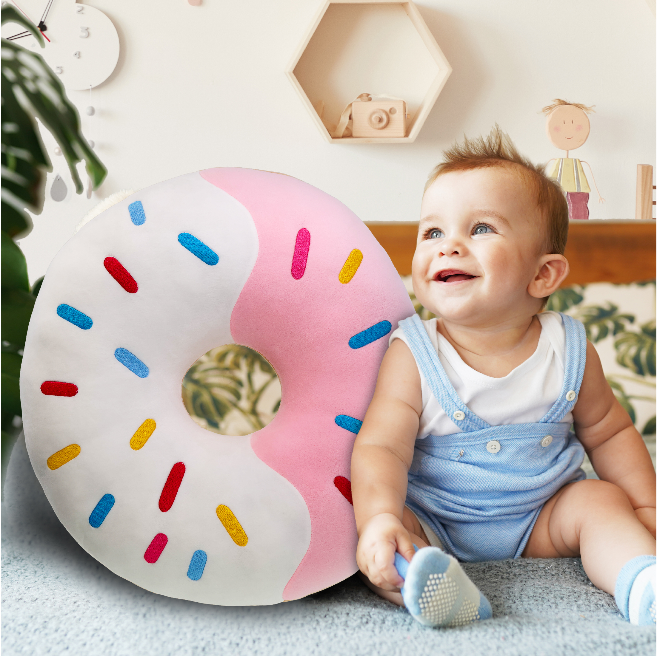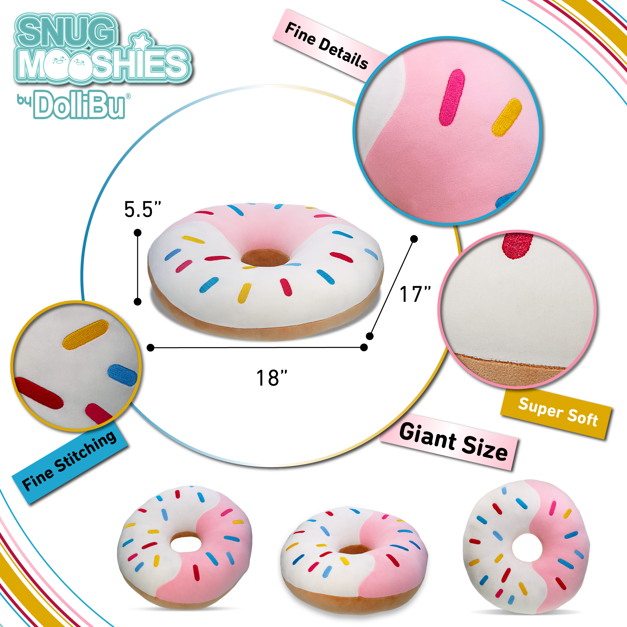 DolliBu Snug-Mooshies Donut Stuffed Toy – Large Sensory Food Plush for Girls and Boys, Huggable Big Plush Donut Toy Pillow to Play, Squeeze, and Cuddle – 18 Inches