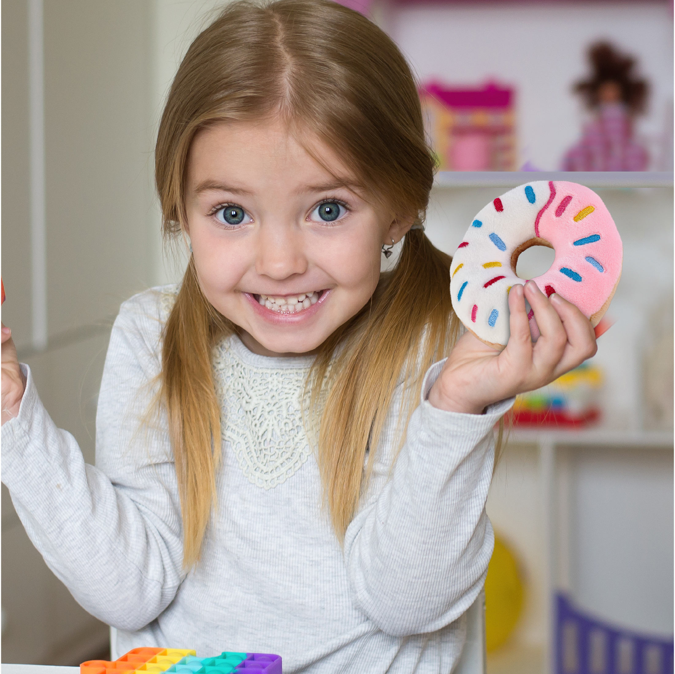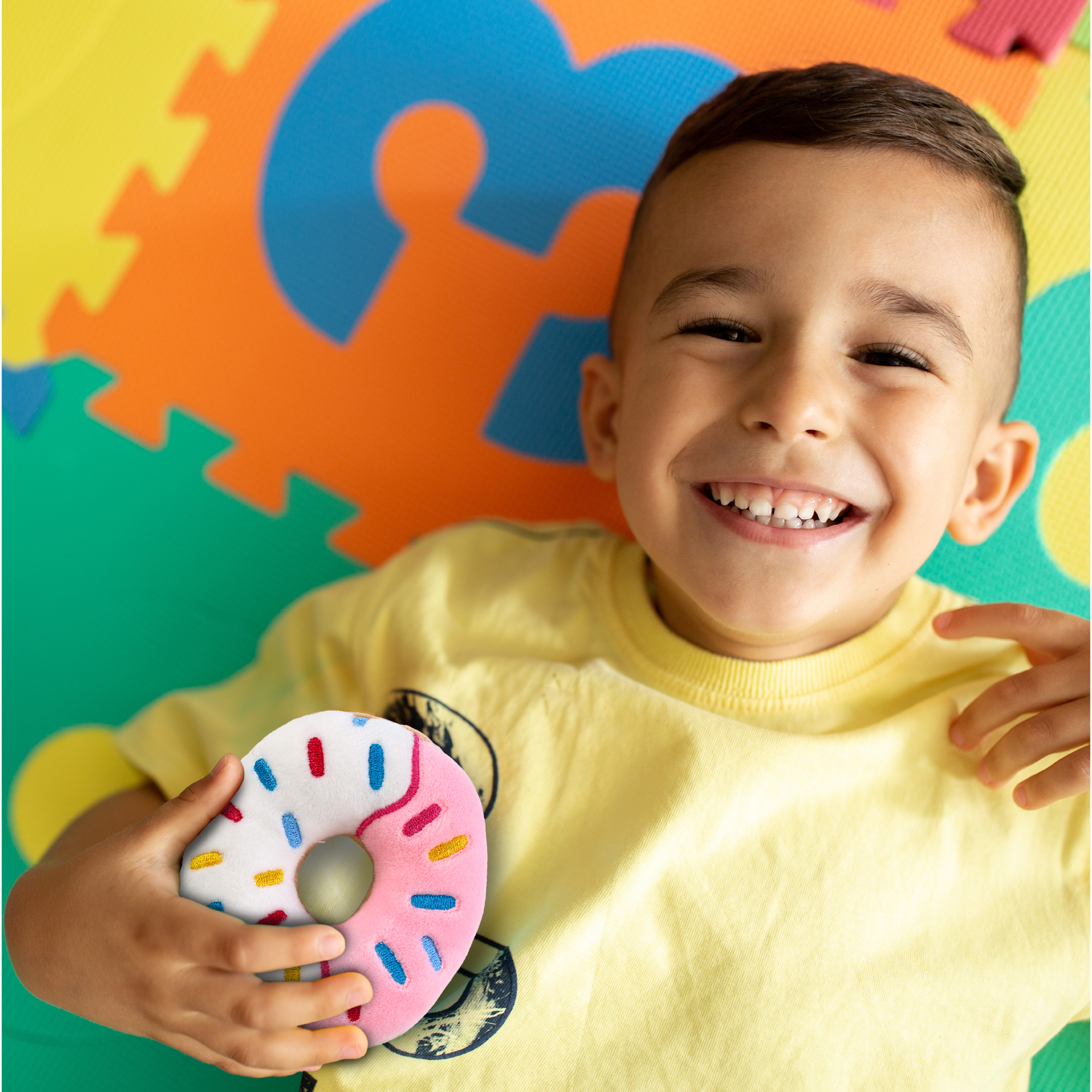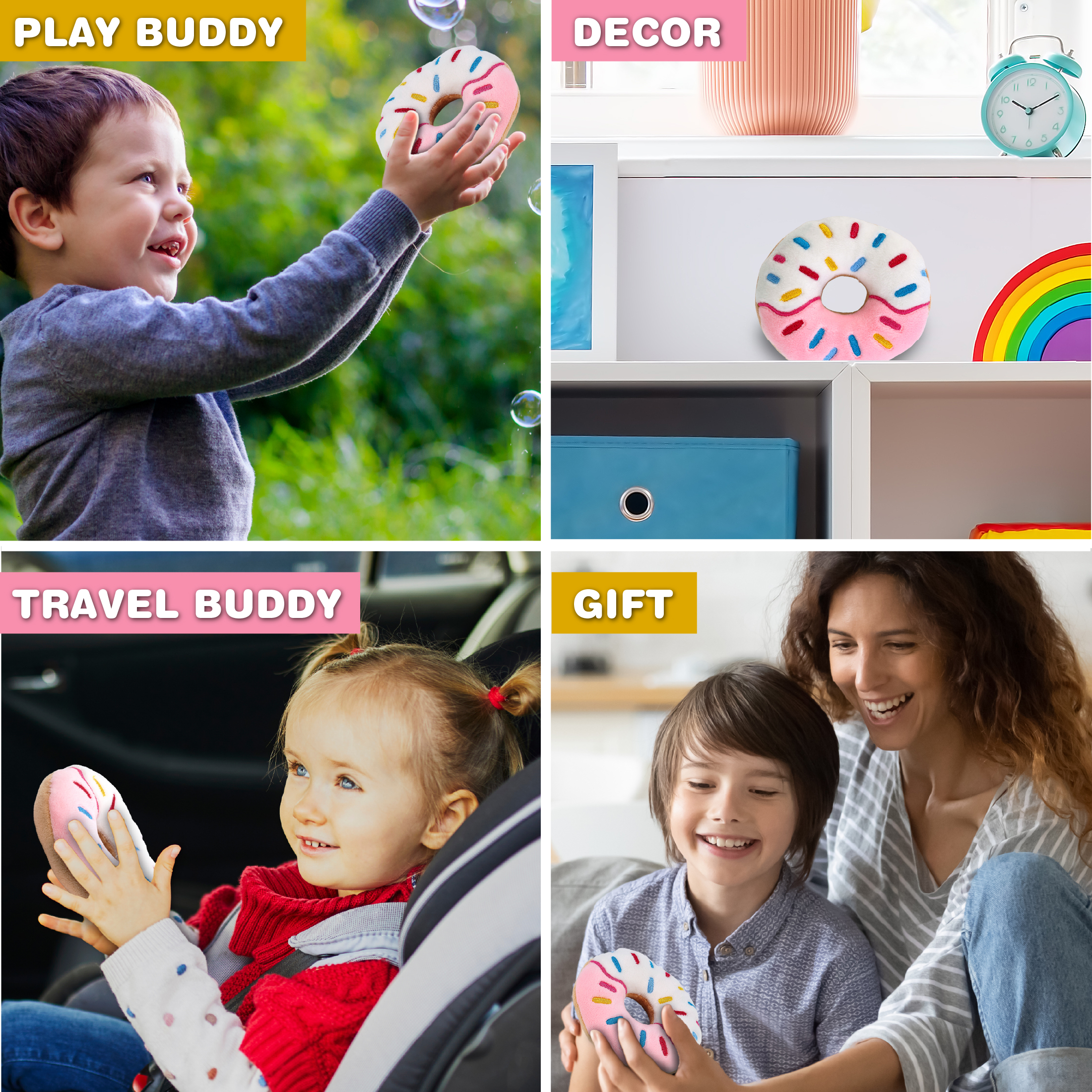DolliBu Snug-Mooshies Donut Stuffed Toy – Soft Sensory Food Plush for Girls and Boys, Cute Small Squishy Donut Toy to Play, Squeeze, Soothe Stress and Cuddle – 4 Inches