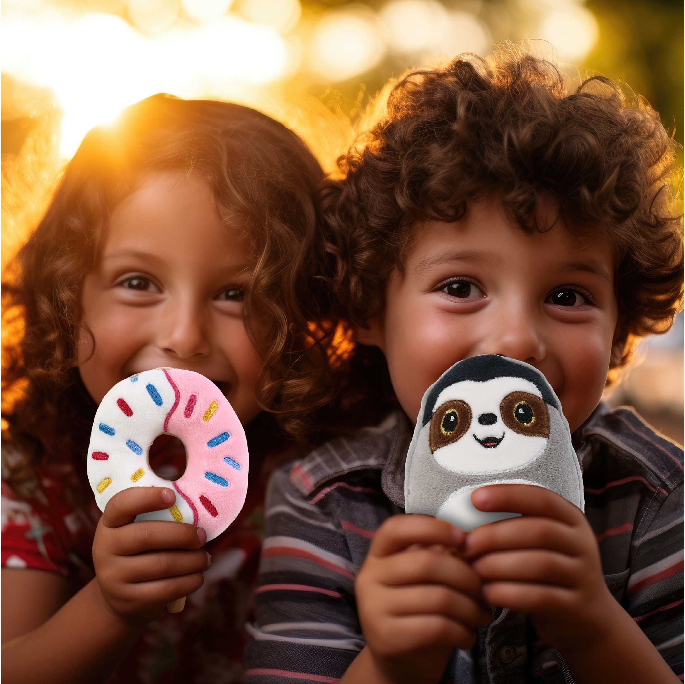 - Features a Soft Plush Donut with Embroidered Sprinkle Details – The Snug-Mooshies Donut Plush features a rounded ring shape with two-tone icing and colorful embroidered sprinkles. The soft filling provides gentle support while maintaining its donut form. The plush surface offers a cozy feel suitable for light squeezing or display. Designed to complement other novelty or food-themed plush items.