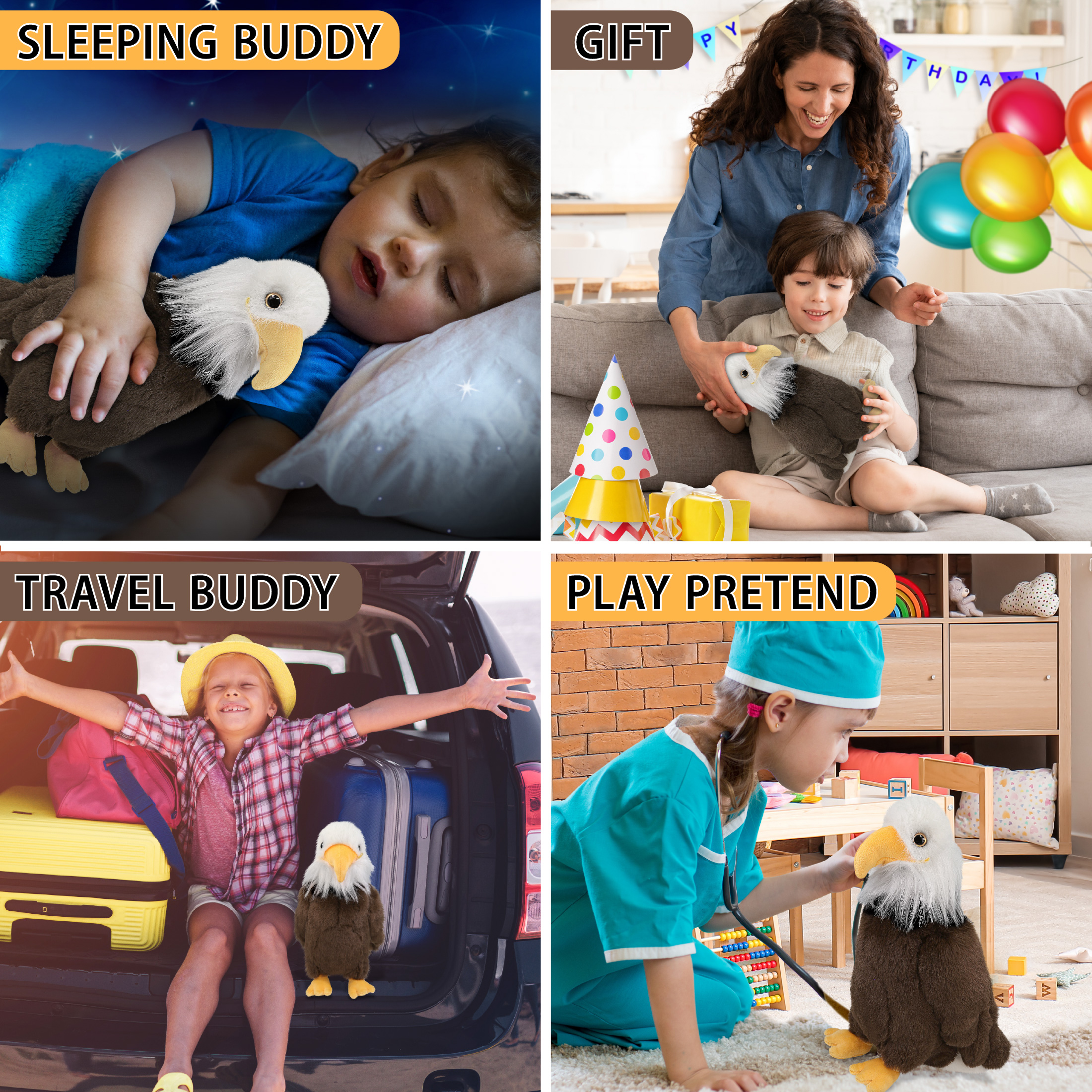 - The Eagle Stuffed Animal Is Perfect for Everyone Who Loves Stuffed Animals – All realistic stuffed animal lovers will be thrilled to add this cute plush stuff animal eagle to their collection of adorable plush toys for kids and adults to display as eagle decor filled with adorable stuffed animals. This eagle stuffed animal toy is a classic eagle gifts that makes a sweet present on different occasions, like birthdays or Valentine’s Day.