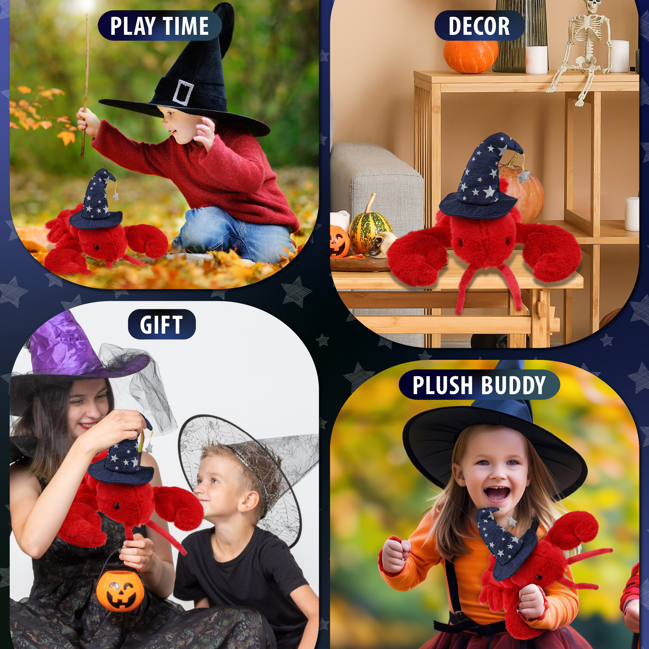 - Features an Elegant Red Lobster Plush with Wizard Stuffed Animal Hat – With a wizard stuffed animal hat adorned with silver stars, this lobster Halloween stuffed animal has a playful and stylish magical look! The detailed wizard fantasy hat adds character to your stuffed toys and makes them stand out among other cute lobster figures. Everyone will love to play with a huggable stuffed animal with wizard clothes for stuffed animals.