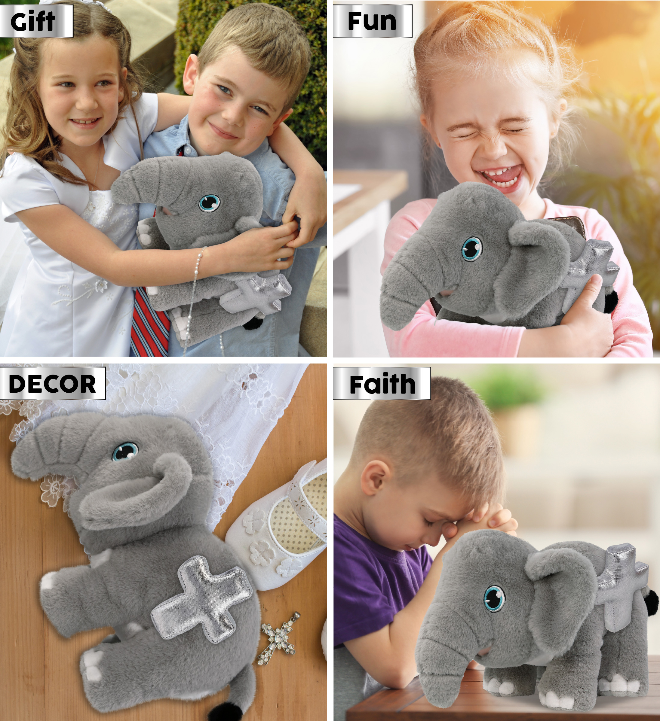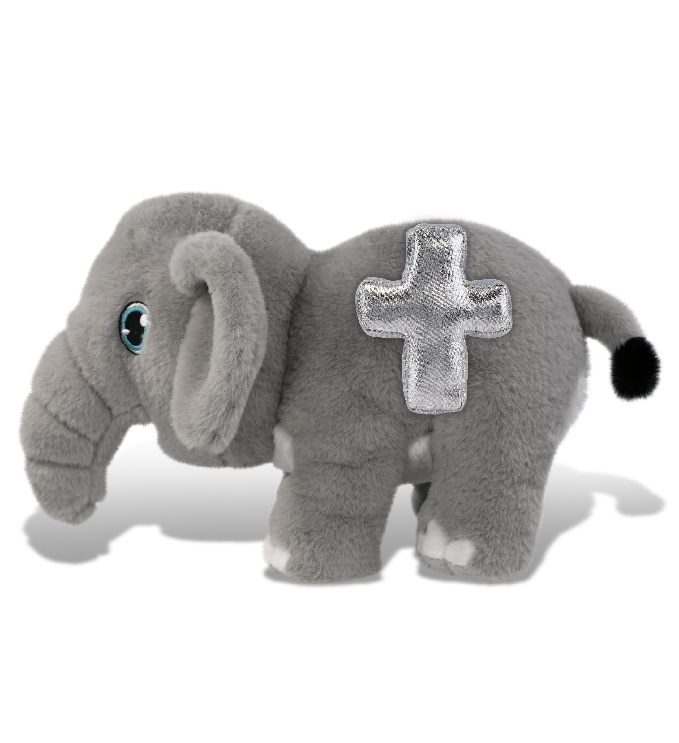 • The Elephant Silver Cross Plush Bear Is for Everyone Who Loves Soft Stuffed Animals – The Eco-Friendly Elephant stuffed animal with cross for baby girl and boy makes for sweet baptism gifts for girl and boy, as well as christening gifts. Celebrate your faith and share the passion with your loved ones by giving them cuddly small stuffed animals for kids. Metallic silver cross plush can also be presented as a healing or feel better teddy bear.