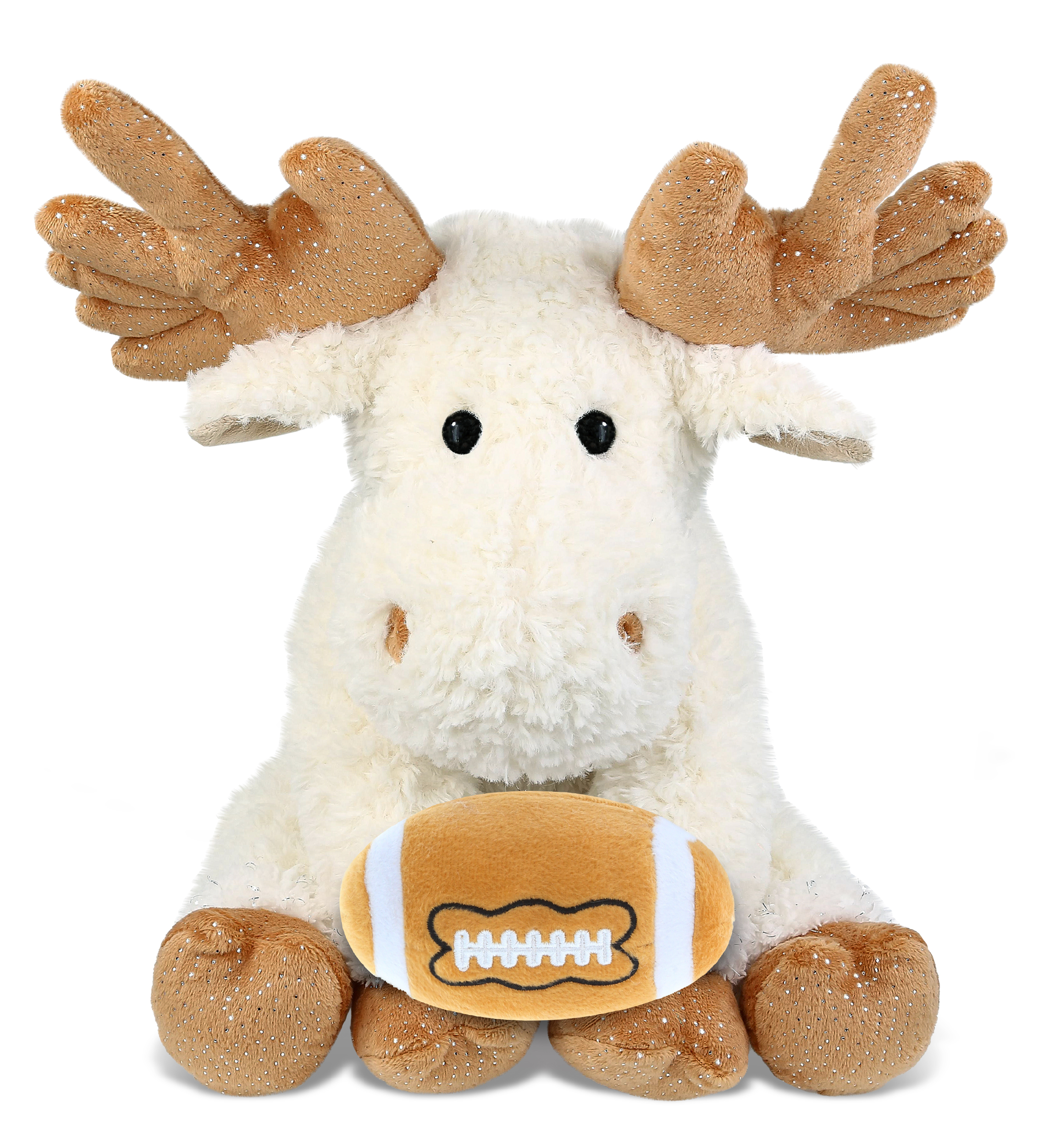 - Personalization, Customization, and Add-On Options – This Super Soft Sports Stuffed Animal Fancy Floppy Moose Plush comes customized with a football plush. You can personalize it with the name of your loved one imprinted on the item. You also have the option to add some or all of the cool add-ons to make your gift extra special: 1) Gift Bag; 2) Tissue Paper; 3) Greeting Card.