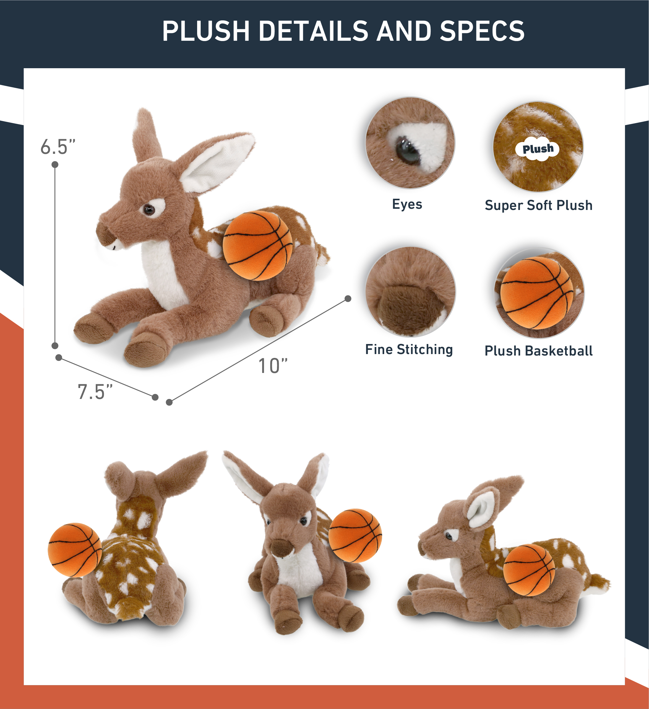- Personalization, Customization, and Add-On Options – The Super Soft Sports Stuffed Animal Fawn Deer comes customized with a Basketball Plush. You can personalize your fawn deer plush toy with the name of your loved one, which we will imprint on the item. You also have the option to add some or all of the cool add-ons to make your plush gift extra special: 1) Gift Bag; 2) Tissue Paper; 3) Greeting Card.