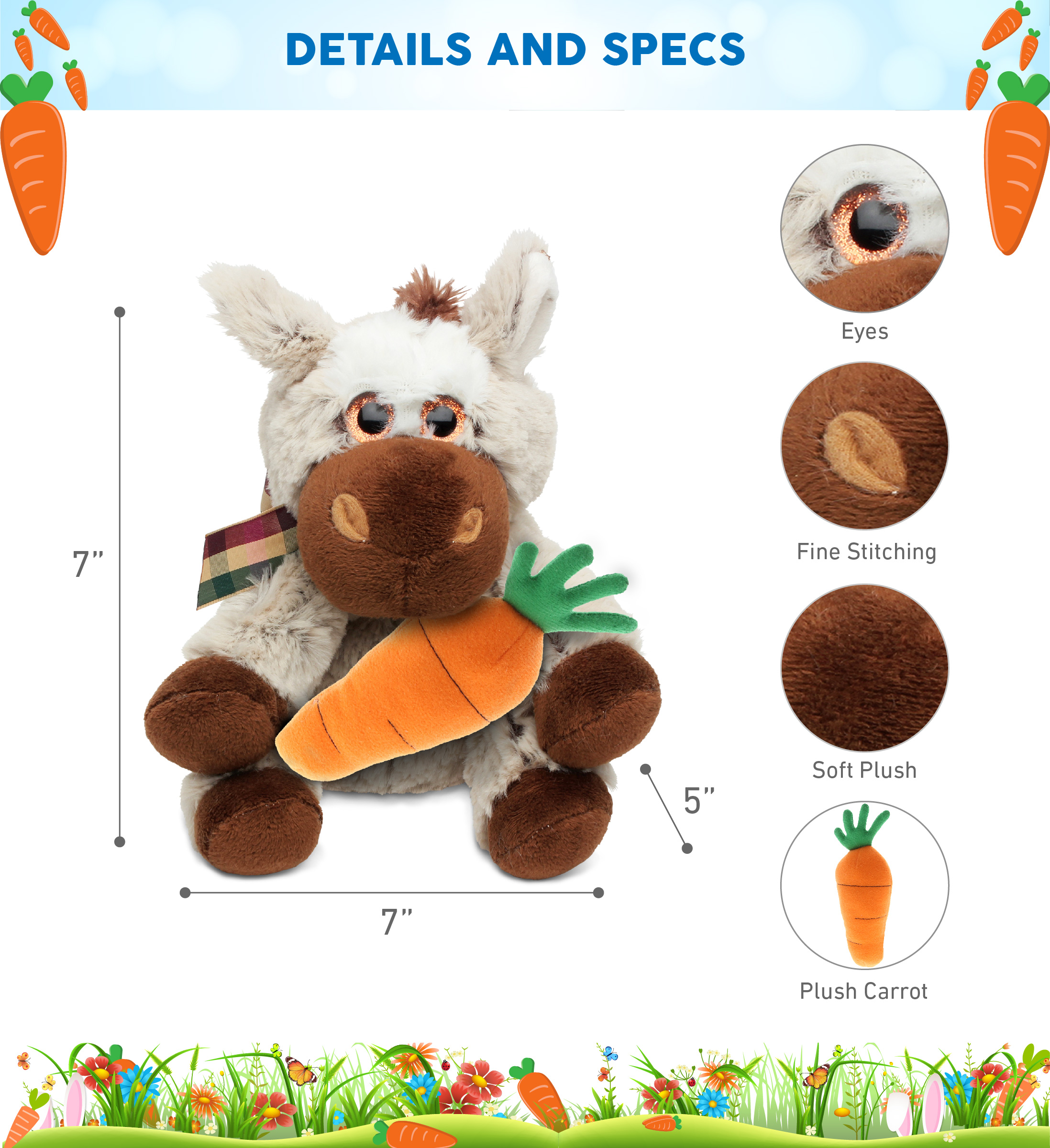 - THE PLUSH DONKEY STUFFED ANIMAL WITH A CARROT COMES WITH A UNIQUE DESIGN YOU WILL LOVE – Super Soft Easter Floppy Donkey comes with an orange Carrot Plush attached to the stuffed animal, making it a perfect plush gift to celebrate Easter. DolliBu’s Easter Floppy Donkey Plush is a sweet present for anyone who loves and collects cute stuffed toys. A must-have animal plush gift to celebrate and make this year’s Easter a memorable occasion.