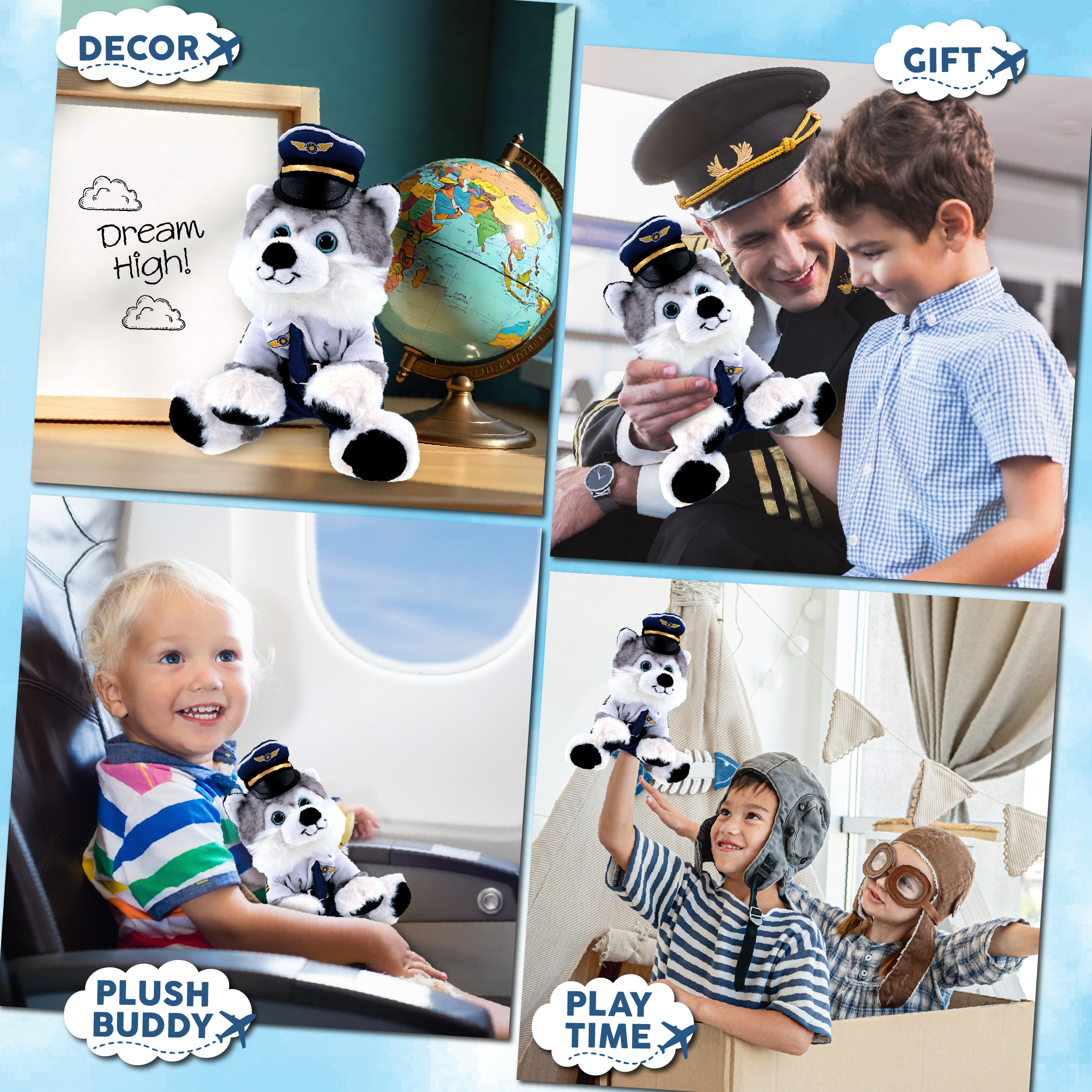 - The Pilot Stuffed Husky Plush is Perfect for Aviation Lovers – Everyone who loves aviation will be thrilled to have a pilot stuffed bear, whether it’s a cute stuffed animal gift or a cute teddy bear plush for aviation-themed collections. Perfect pilot fluffy stuffed animal for flight pretend play and as a pilot husky toy gifts for kids who aspire to be pilots when they grow up. Recommended for ages 3 and up.