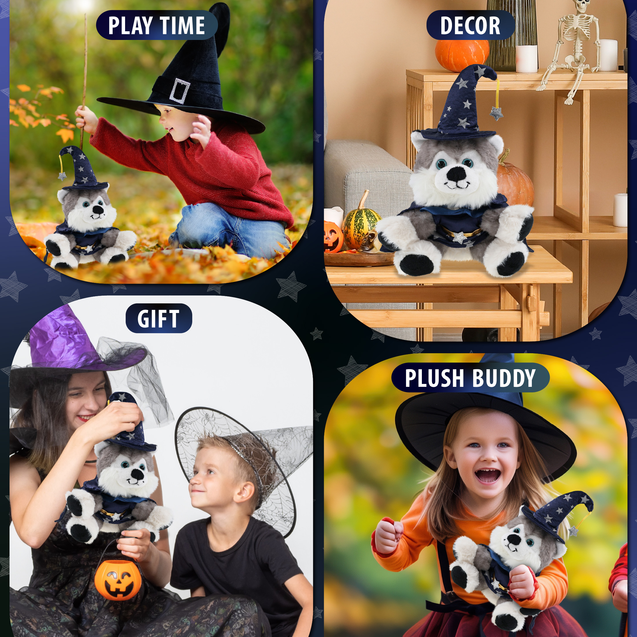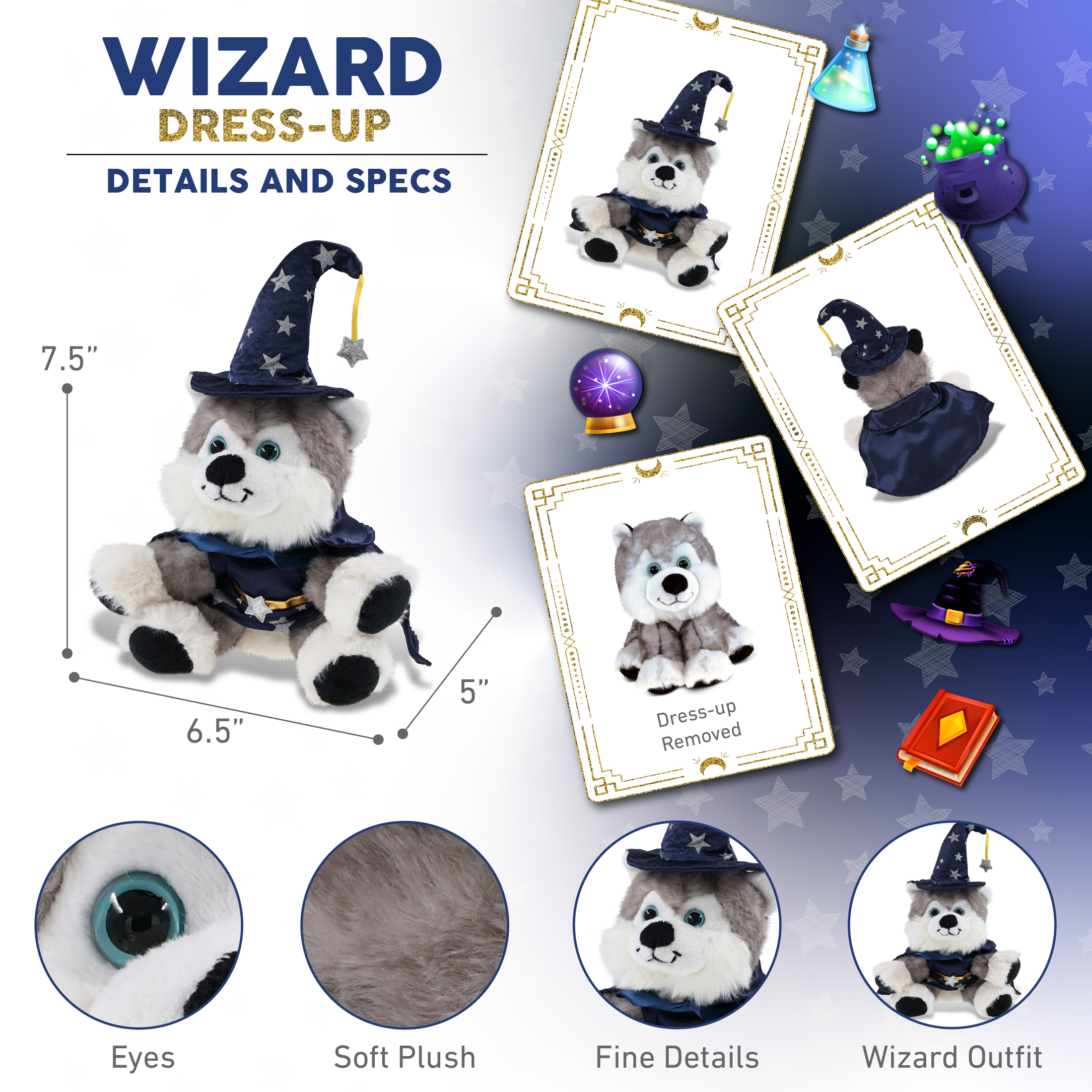 - The Wizard Stuffed Floppy Husky Plush is Perfect for Fantasy Lovers – Everyone who loves stuffed animal toys will be thrilled to have a wizard stuffed husky, whether it’s a cute stuffed animal gift or a cute teddy bear plush for a wizard-themed collection. Perfect wizard fluffy stuffed animal for pretend play and as a gift for kids who love stuffed teddy bear toys and stuffed animals for boys and girls. Recommended for ages 3 and up.
