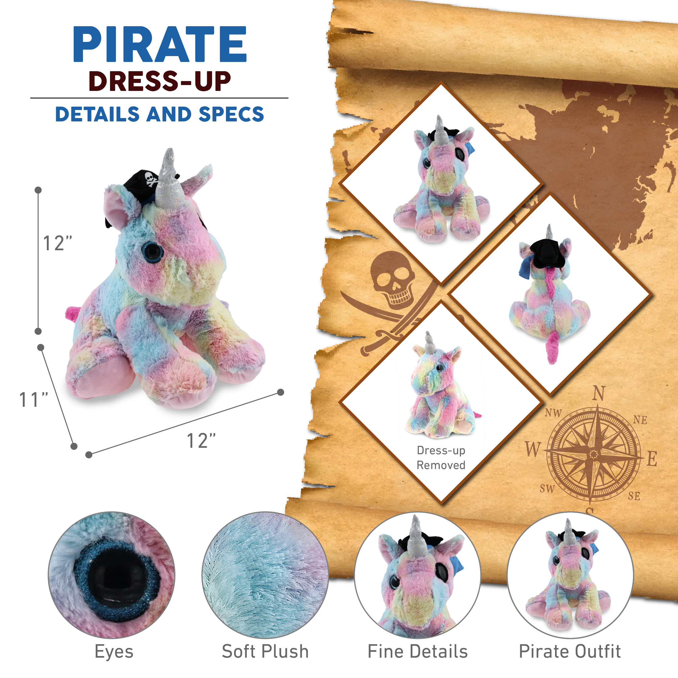 - Includes 1 DolliBu Floppy Rainbow Unicorn Toy with Pirate Outfit – The stuffed animal unicorn doll wears a pirate costume featuring a pirate hat. Whether you’re collecting unicorn toys or hunting for pirate stuff for kids, this toy unicorn is the perfect combo of silly plush fun and dress-up adventure. This cute stuffed animal pirate plush unicorn measures approximately 12Lx11Wx12H inches. This cute unicorn plush is best for kids ages 3 and up.