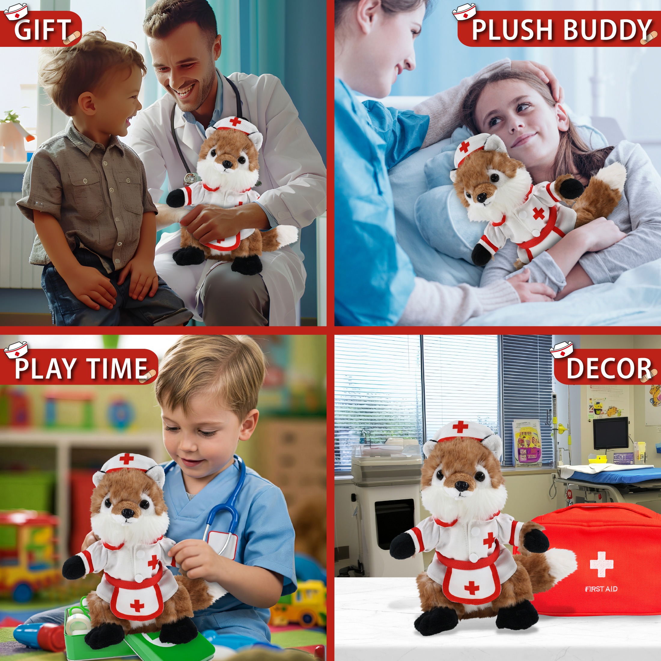- Perfect Wild Animal Stuffed Toy Nurse Plush for Those Who Appreciate Health Care Workers – If you’re looking for a gift for nurse graduate, a get well teddy bear for your sick friend, the stuffed nurse fox brings a comforting, playful vibe to any occasion. Ideal hospital gifts for children to make them feel safe or as medical toys for kids to inspire them at a young age. The perfect stuffed animal for nurses and cool storytelling.