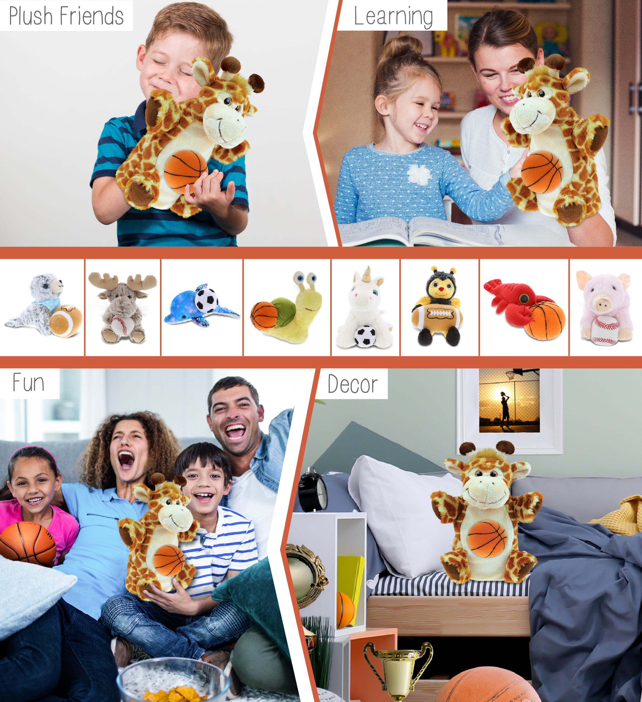 - Personalization, Customization, and Add-On Options – The Super Soft Sports Stuffed Animal Giraffe Hand Puppet comes customized with a Basketball Plush. You can personalize your giraffe plush toy with the name of your loved one, which we will imprint on the item. You also have the option to add some or all of the cool add-ons to make your plush gift extra special: 1) Gift Bag; 2) Tissue Paper; 3) Greeting Card.