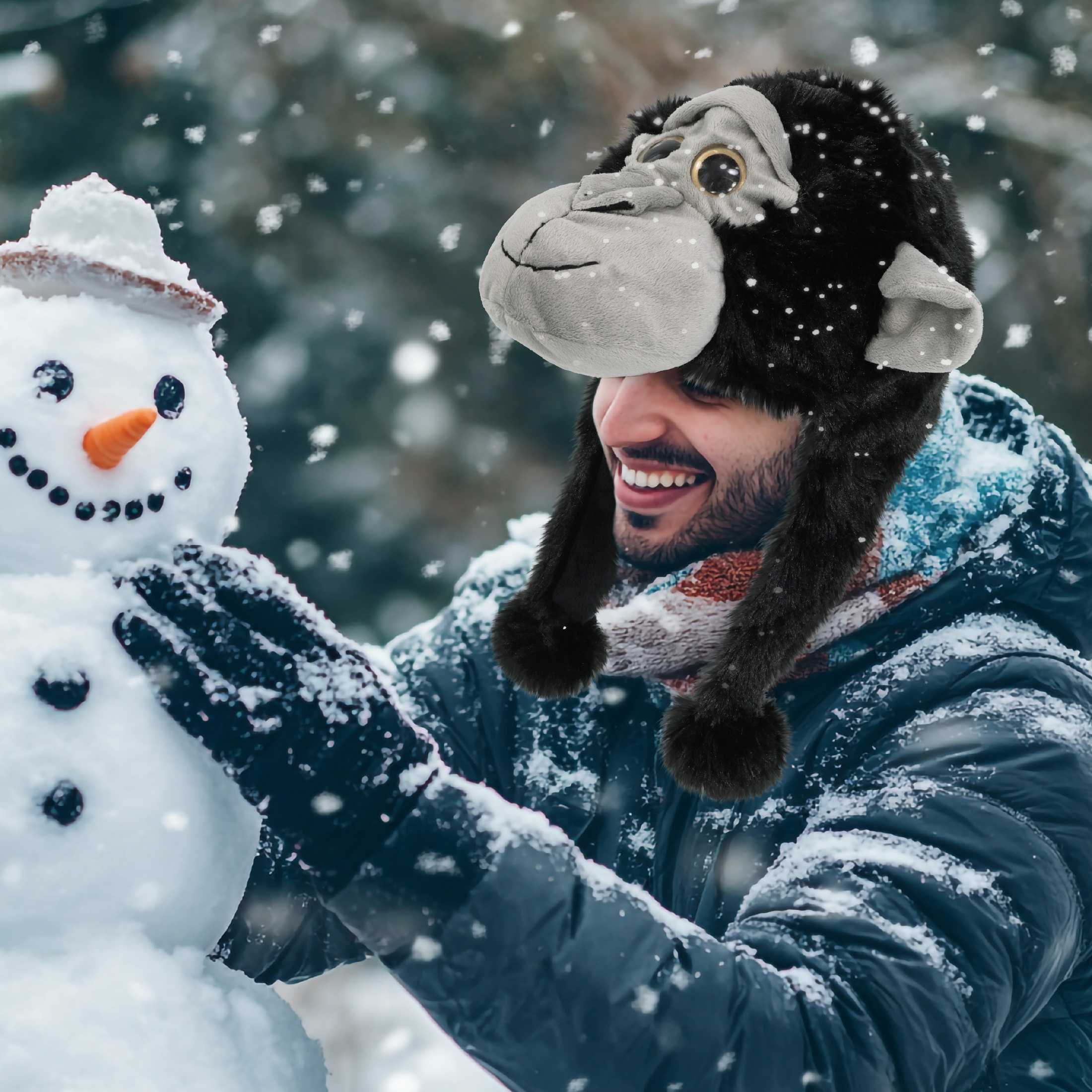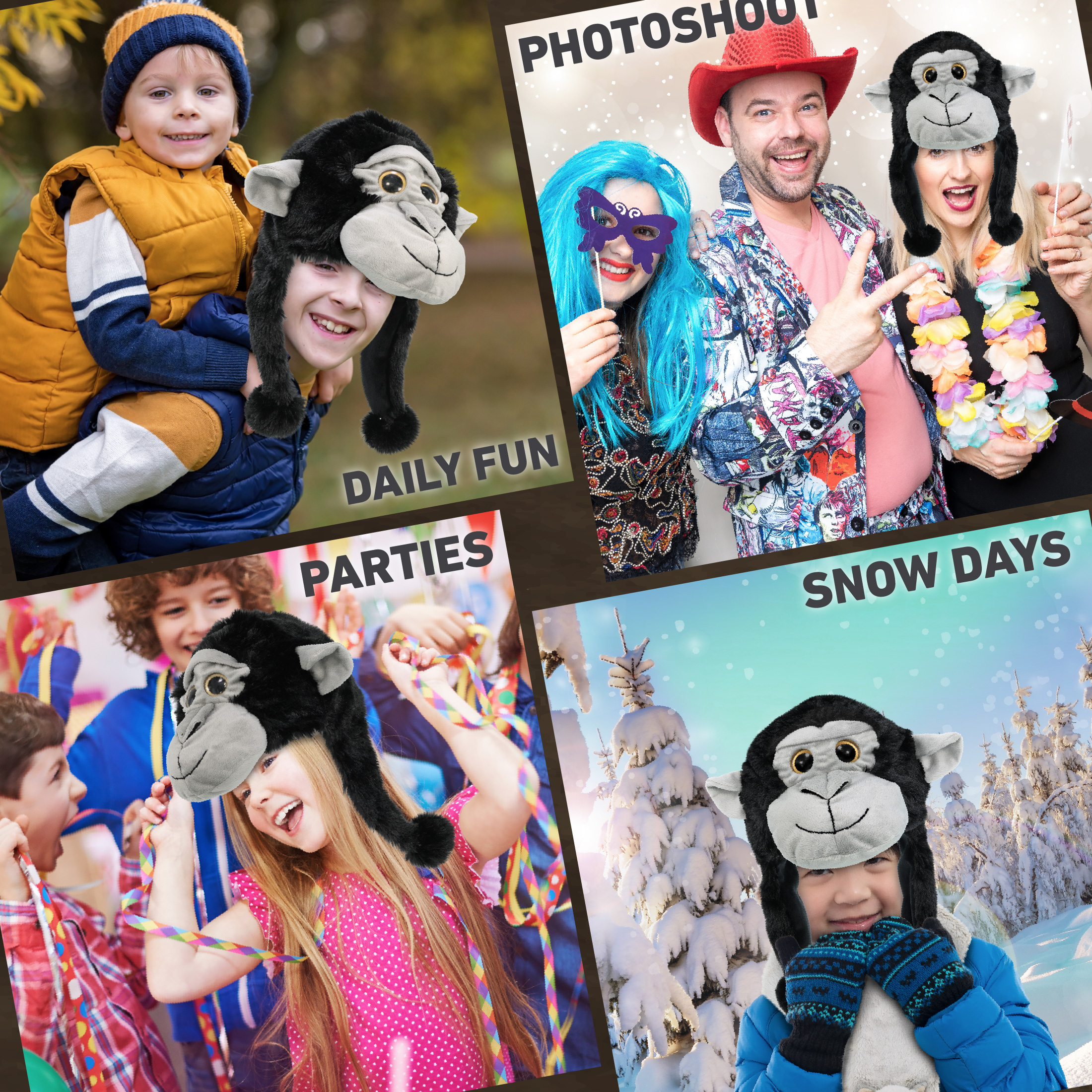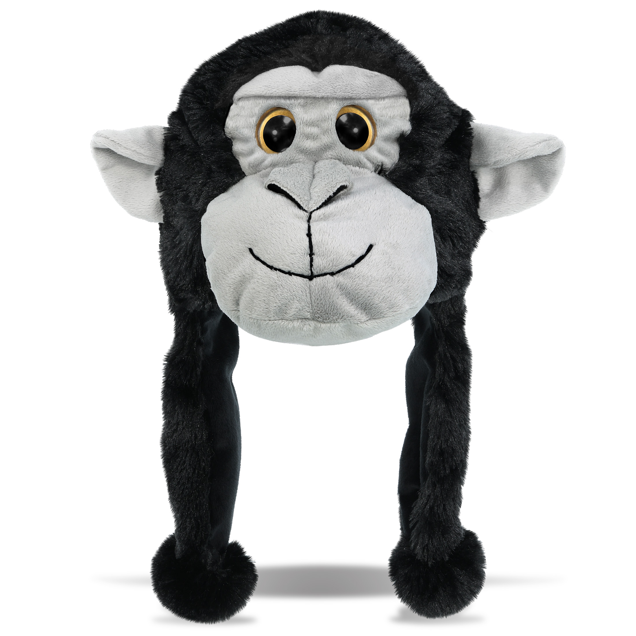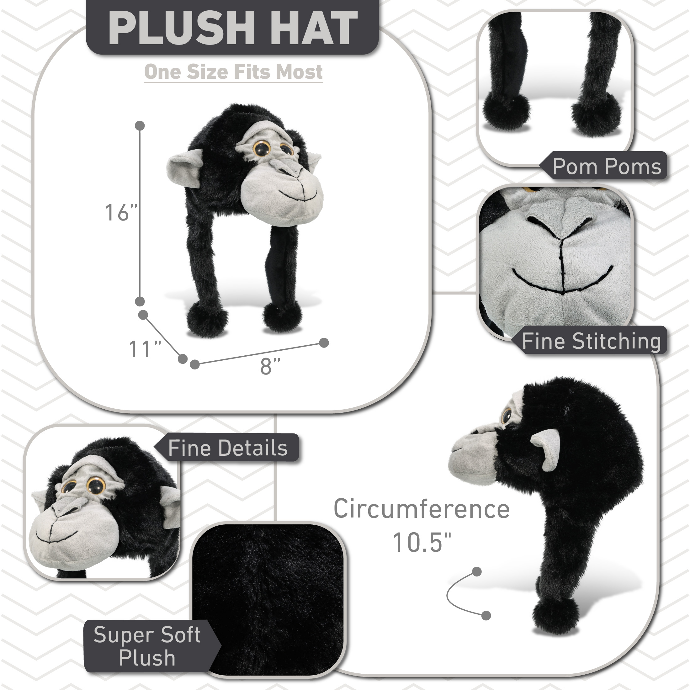 DolliBu Stuffed Animal Gorilla Plush Hat – Super Soft Warm Winter Hat With Ear Flaps, Stuffed Animal Halloween Costume Toy Cozy Fleece Winter Headwear For Kids and Teens – One Size