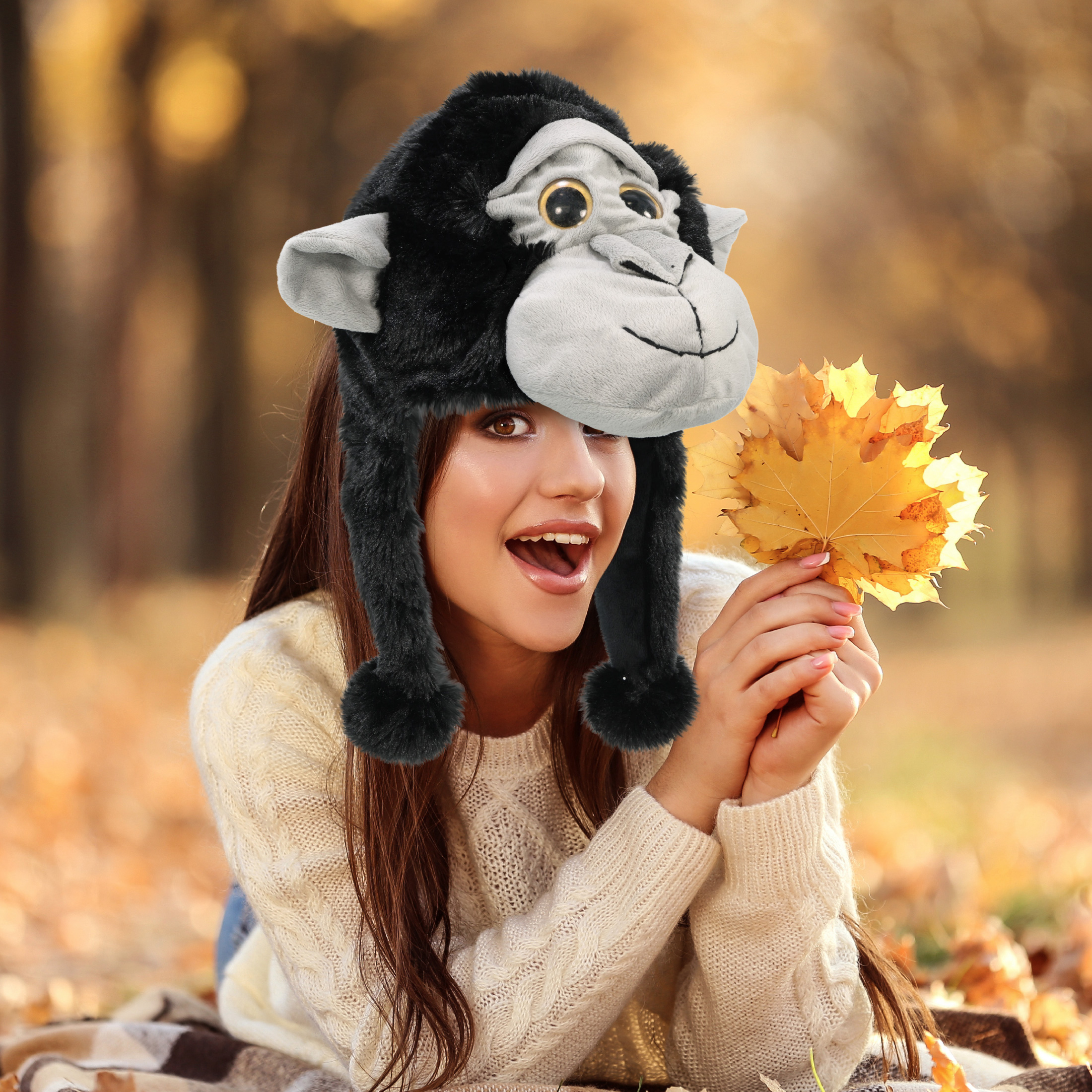 • Features Gorilla Costume Novelty Hat – This gorilla outfit hat features earflaps for extra comfort with fun ape design. Ideal match for gorilla hats for women or as part of a womens costume for themed events. Whether worn as a kids novelty hat or paired with gorilla clothing, it adds humor and charm. The black and white color and realistic style make it a standout gorilla headpiece for any party or costume occasion.