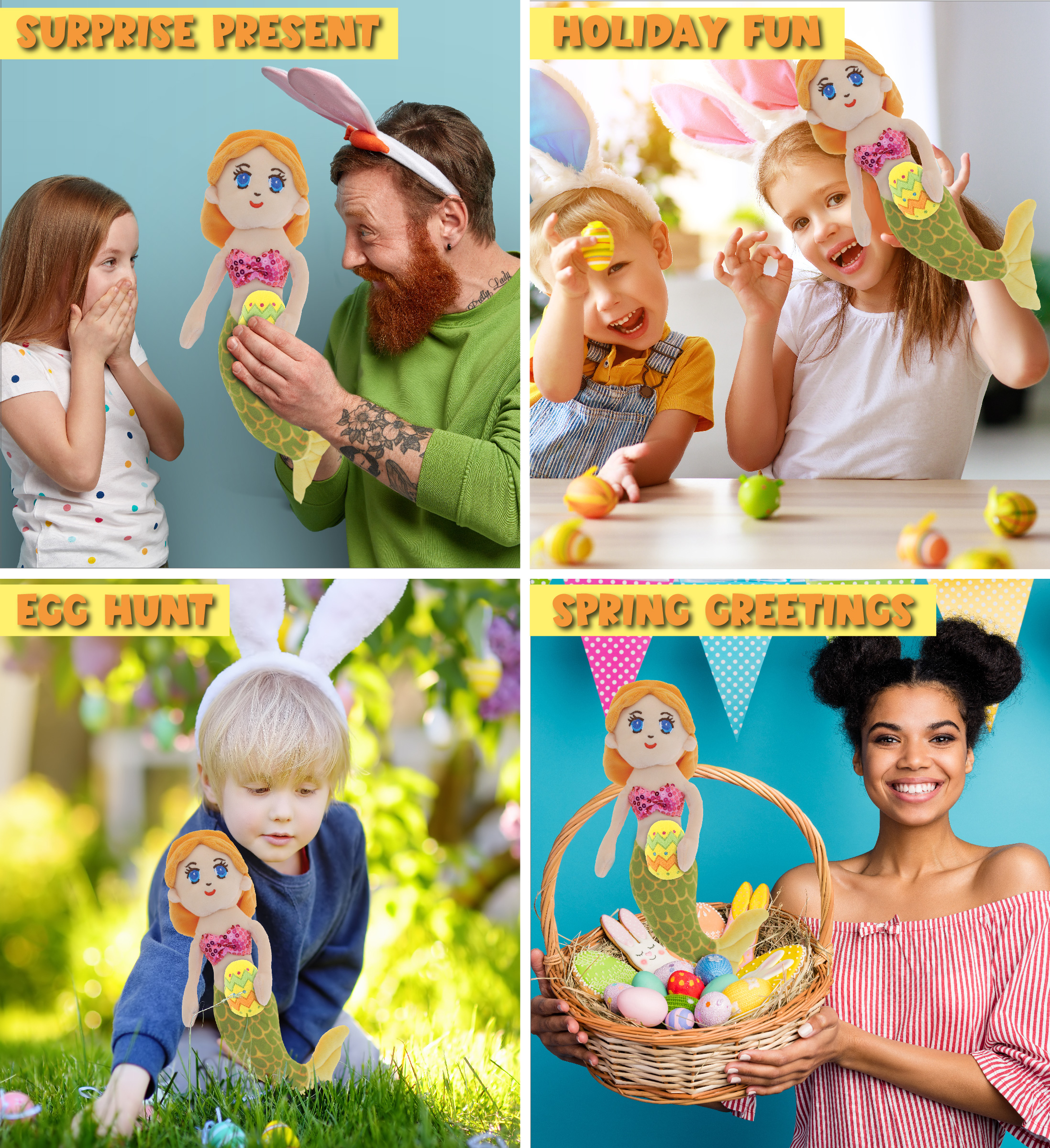 - IDEAL USE FOR THE MERMAID EASTER STUFFED ANIMAL WITH EGG – Surprise your loved ones with sentimental Easter stuffed animals for boys and girls and make the celebration extra special. Gifting cute stuffed animals for teen girls and boys is a great way to share the joy of Easter and celebrate the beginning of Spring! Make the season memorable and surprise your loved ones with a colorful small Easter stuffed animals to display in any room.