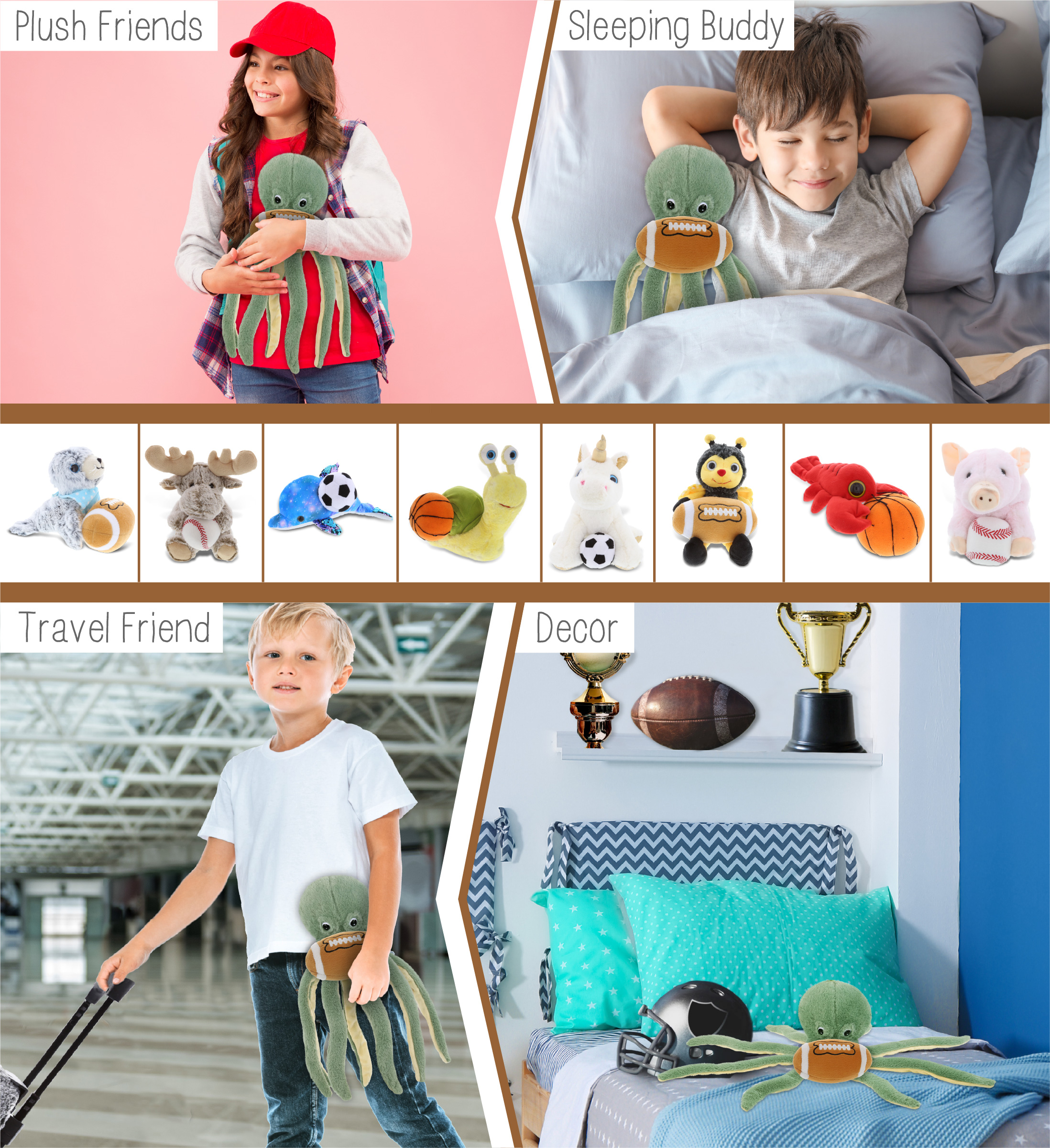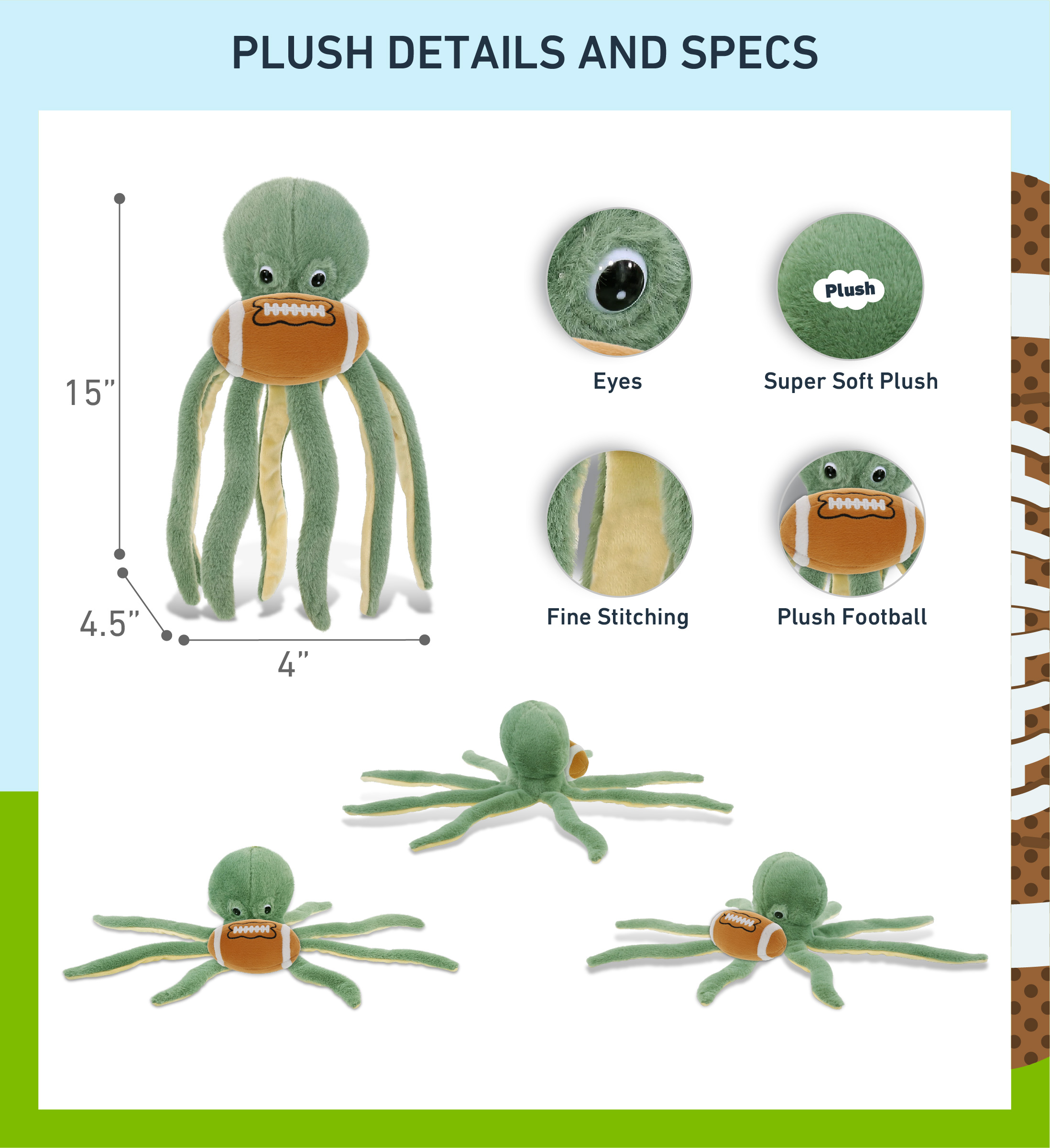 Green Octopus 15″ With Football Plush – Super-Soft Plush