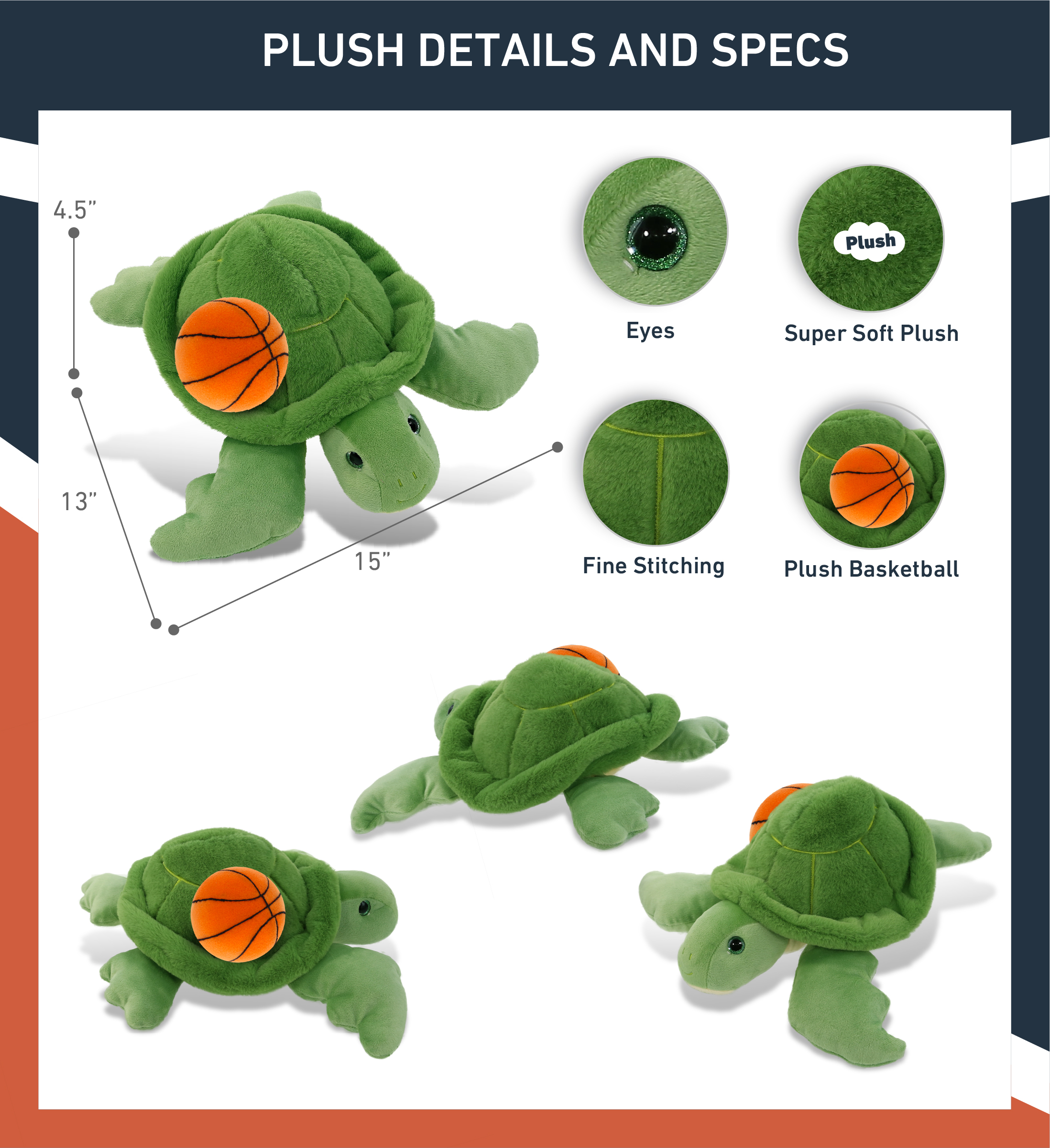 - Included with the Purchase of Adorable Cute Sea Turtle Plush – Includes 1 DolliBu Super Soft Green Sea Turtle with a basketball plush, decorated with realistic features of a cute plush animal. The body with a sports gift ball plush makes the plush perfect for cuddles. The sea turtle plush toy features details like its characteristic flippers. The sea turtle’s eyes make the critter so charming. The plush toy buddy measures 13Lx15Wx4.5H inches.