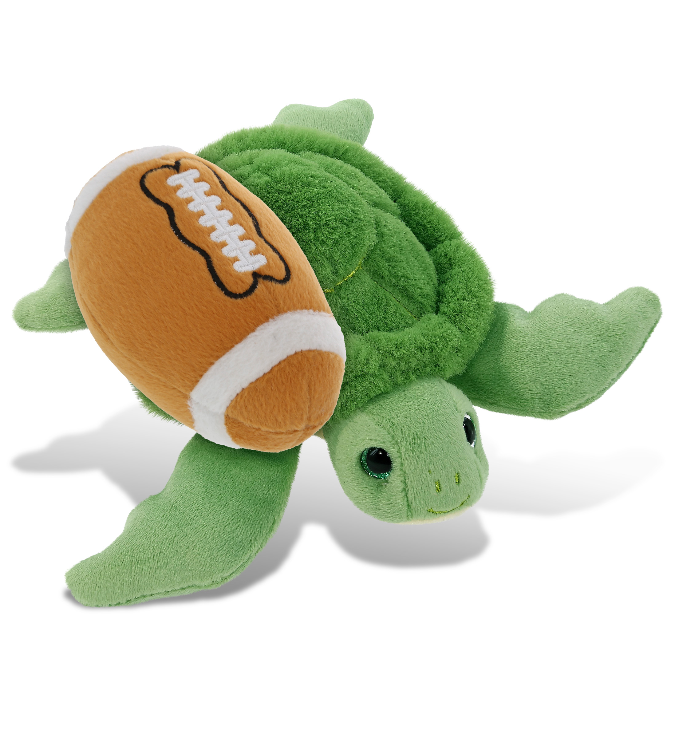 - Personalization, Customization, and Add-On Options – This Super Soft Sports Stuffed Animal Green Sea Turtle Plush comes customized with a football plush. You can personalize it with the name of your loved one imprinted on the item. You also have the option to add some or all of the cool add-ons to make your gift extra special: 1) Gift Bag; 2) Tissue Paper; 3) Greeting Card.