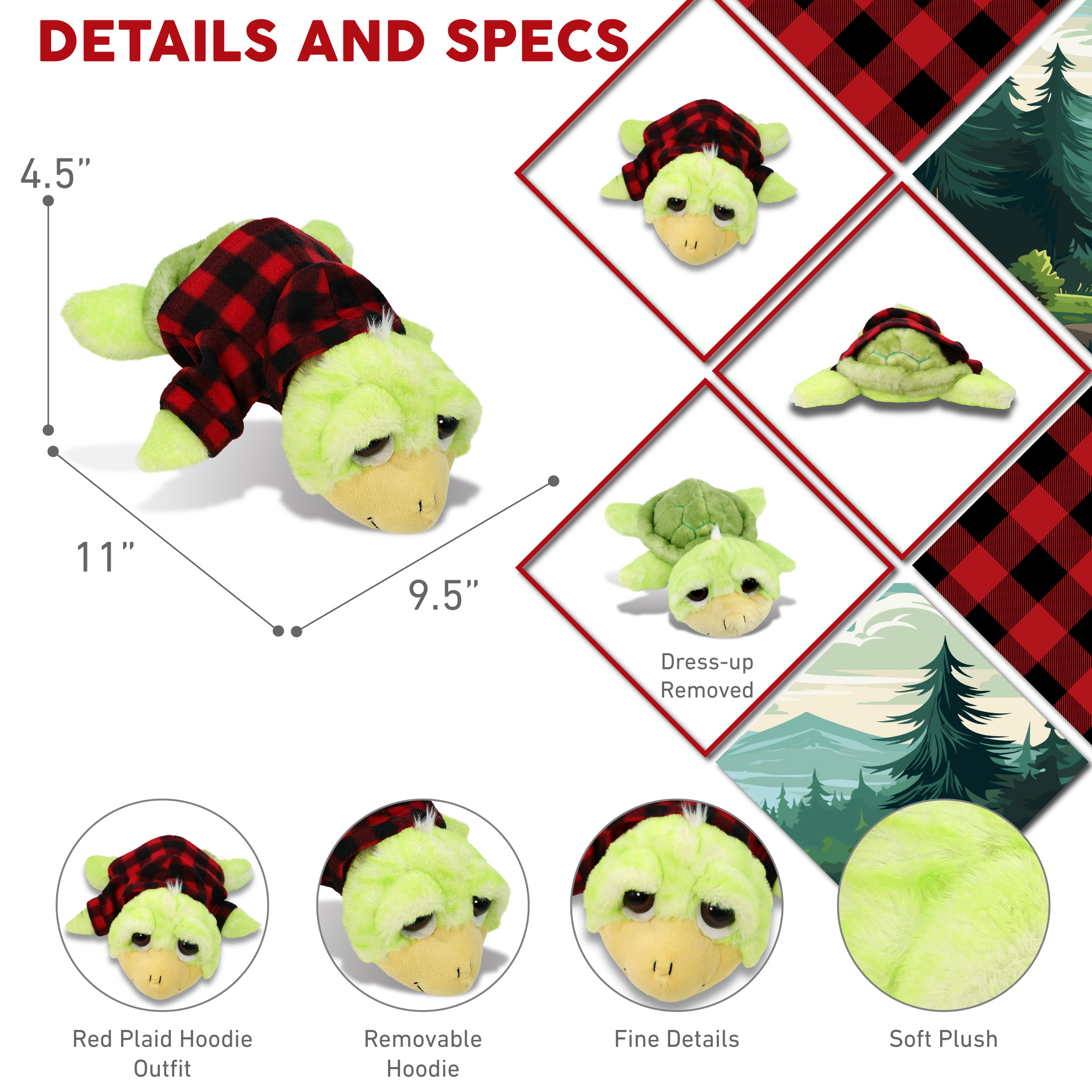 - Included with The Purchase of Sea Turtle Plush with Red Plaid Hoodie Jacket – Includes 1 Large Green Sea Turtle with Red Flannel Plaid Shirt. Dressed in flannel hooded jacket, the stuffed turtle is all about comfort and style, making it the perfect addition to your Christmas plush animals decor for your Christmas tree, ready to join your holiday photos or family gatherings. The turtle with cute red checkered shirt measures 11Lx9.5Wx4.5H inches.