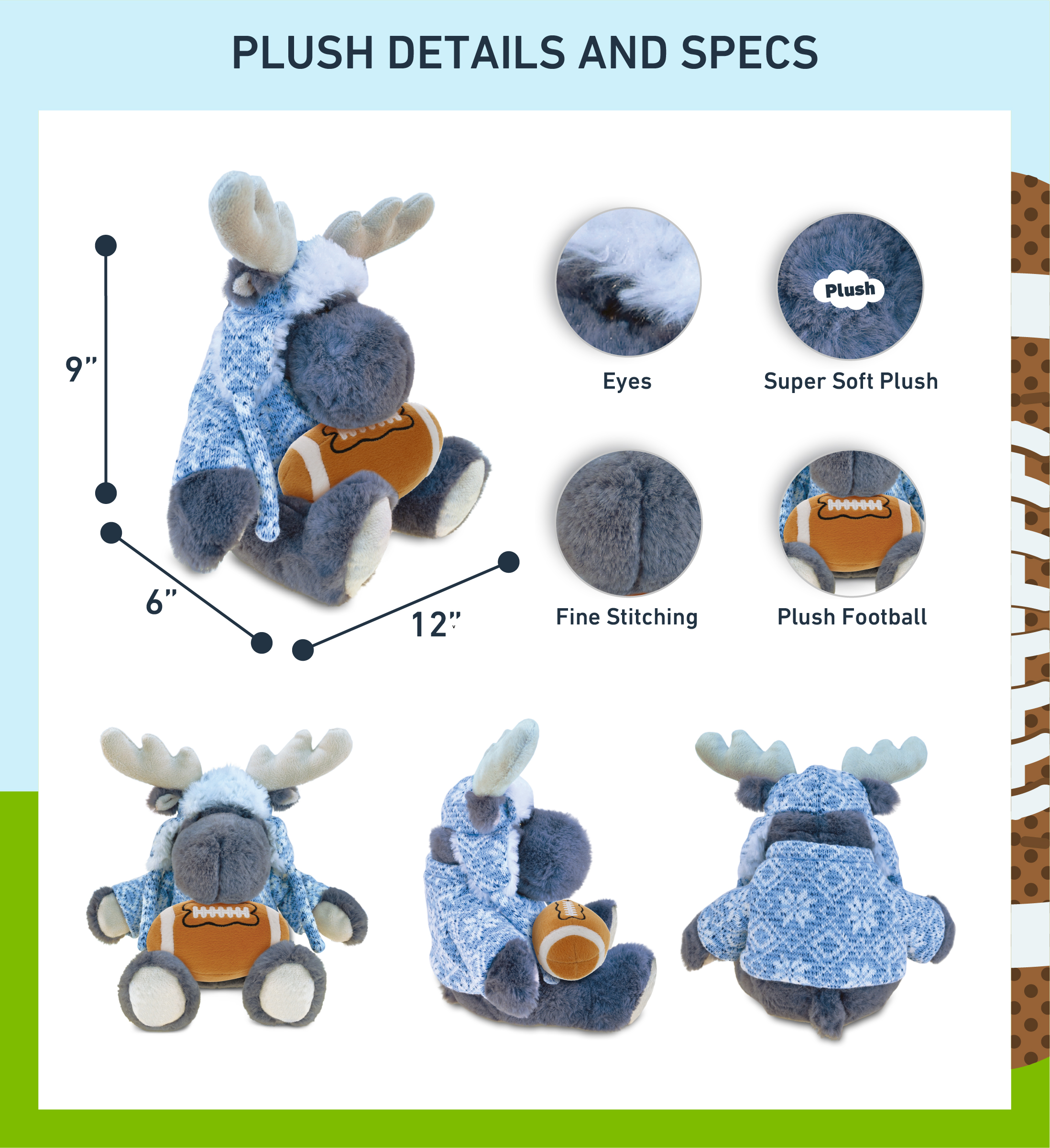 - INCLUDED WITH THE PURCHASE OF ADORABLE CUTE MOOSE PLUSH – Includes 1 DolliBu Grey Moose with Clothes Super Soft Plush with a football plush, decorated with realistic features of cute moose. The moose body with a sports gift ball plush makes the plush perfect for cuddles. The moose plush toy features details like its characteristic antlers. The moose eyes make the critter so charming. The cute plush toy buddy measures 12Lx6Wx9H inches.
