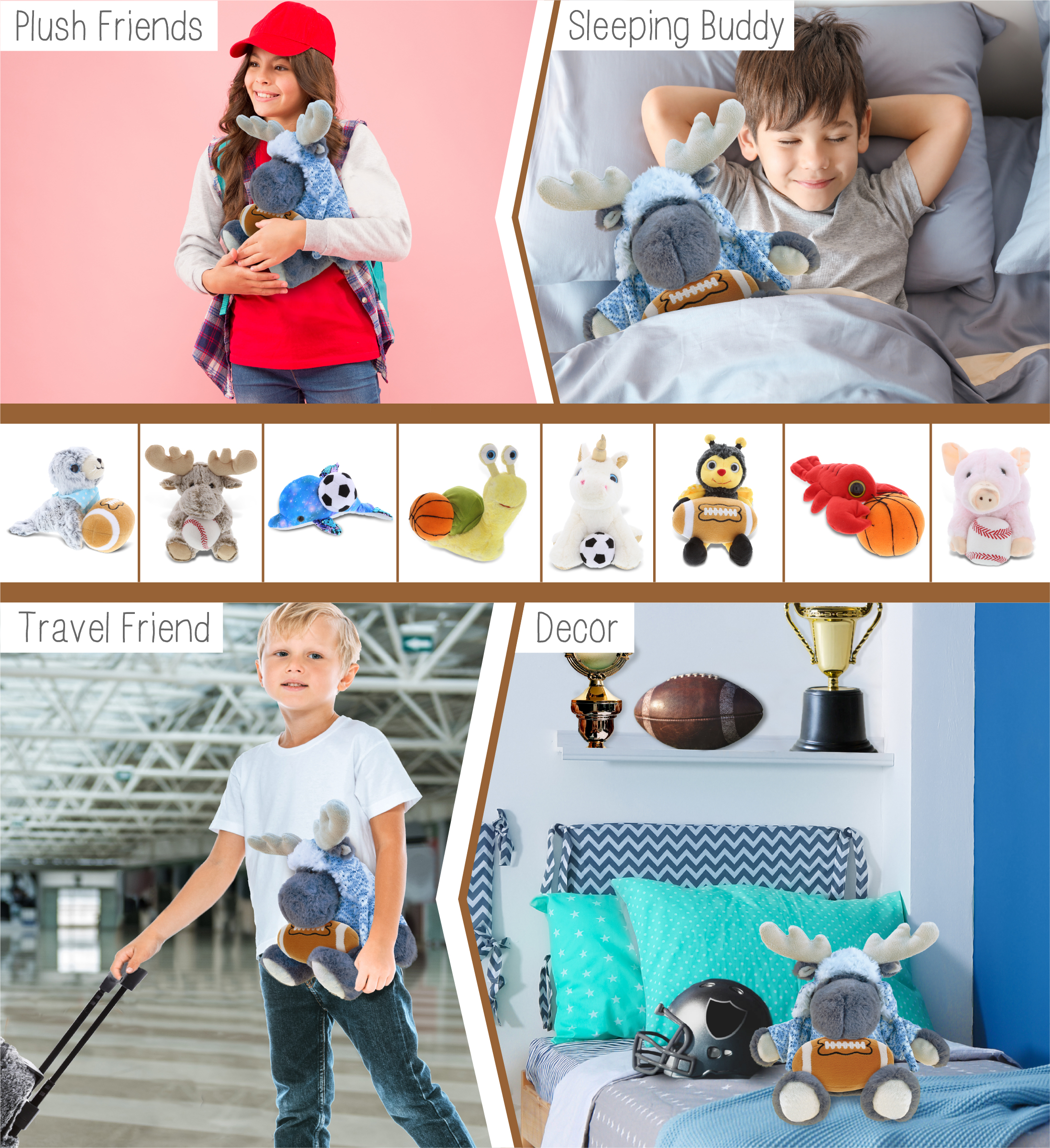 - THE STUFFED ANIMAL MOOSE COMES WITH A UNIQUE DESIGN YOU WILL LOVE – Have an exciting imaginary play with your little one and the moose toy. DolliBu’s Super Soft Grey Moose with Clothes will surely bring a smile to your loved ones who love wild animals and football sport. A must-have toy for family bonding. Add stuffed animals for kids and adults like the cute and realistic moose plush to your wildlife-themed room and decor.