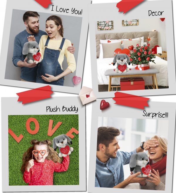 - INLUDED WITH THE PURCHASE OF VALENTINE PLUSH – Includes 1 DolliBu Grey Rabbit Valentines Day Stuffed Animal Plush with a romantic message embroidered on the red stuffed heart plush. Make this Valentine’s Day plush a sweet stuffed animal Valentine gift for boyfriend or girlfriend. husband, wife, or a cute rabbit plush surprise for your kids who love playing with stuffed rabbits. The stuffed grey rabbit plush measures 7LX5WX7H inches.