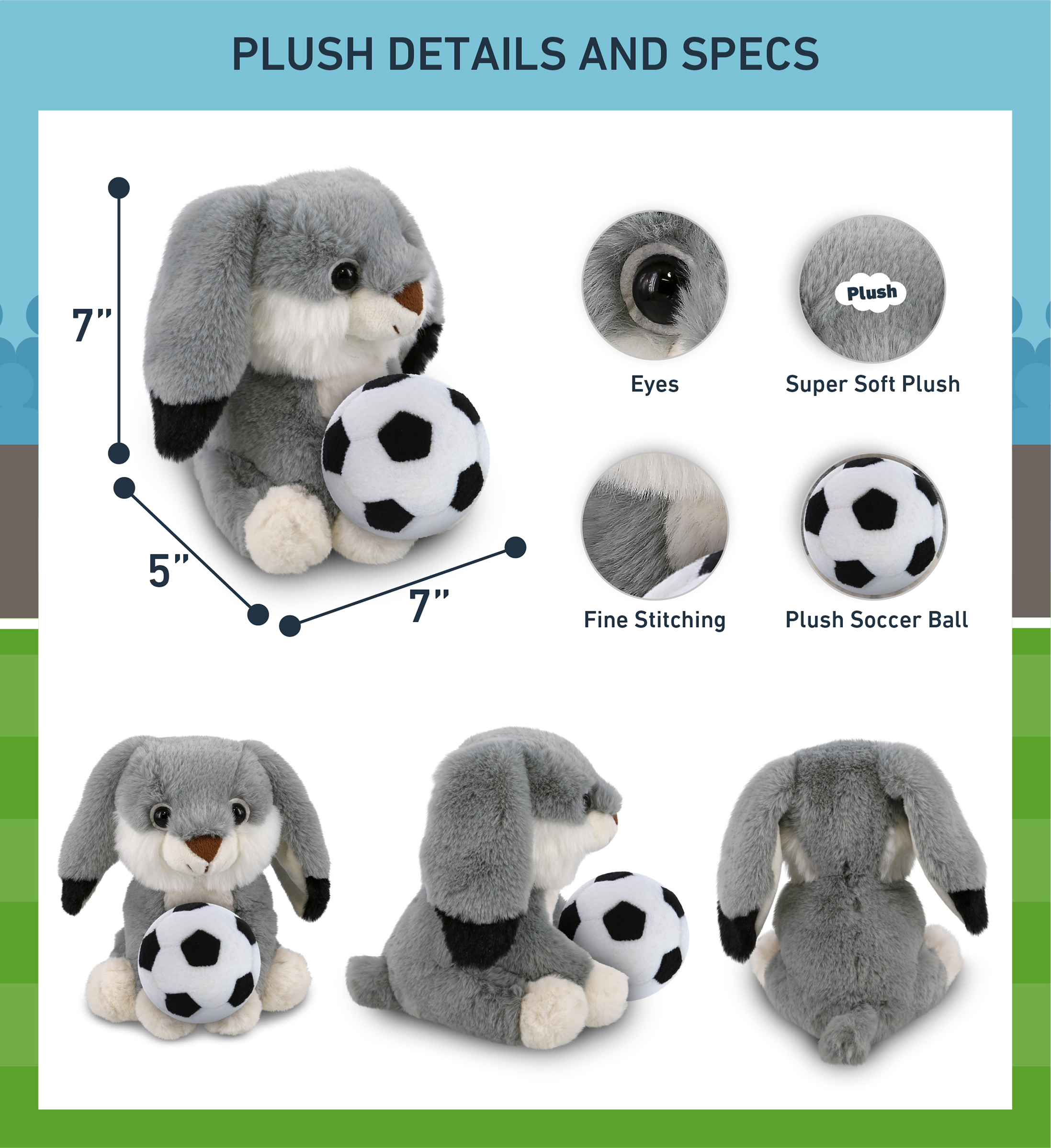 - INCLUDED WITH THE PURCHASE OF ADORABLE CUTE BUNNY PLUSH – Includes 1 DolliBu Grey Rabbit Super Soft Plush with a soccer ball plush, decorated with realistic features of cute rabbit. The rabbit’s body with a sports gift ball plush makes the plush perfect for cuddles. The rabbit plush toy features details like its characteristic ears. The rabbit’s eyes make the critter so charming. The cute plush toy buddy measures 7Lx5Wx7H inches.