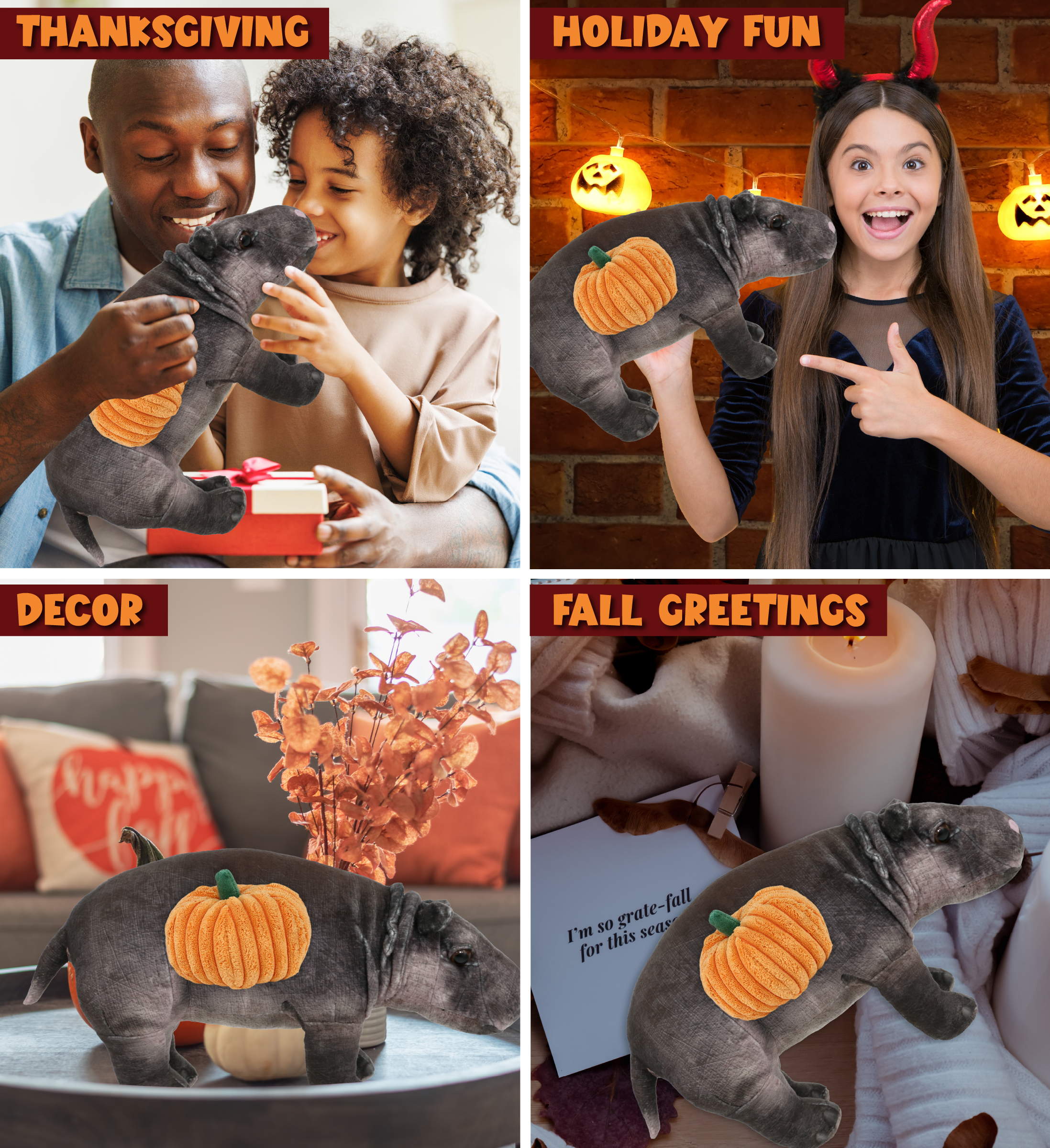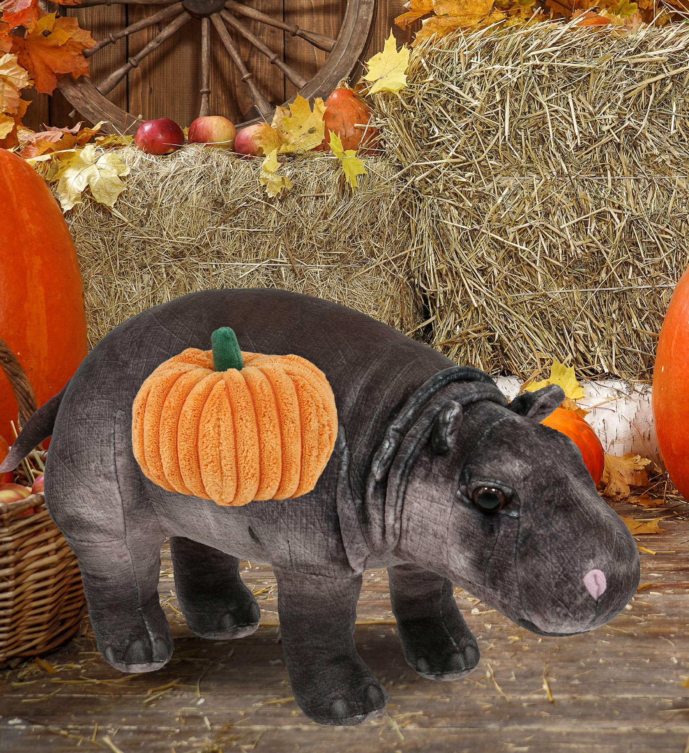 - The Hippo Pumpkin Plush Toy Is for Everyone Who Loves Halloween Toys – The wild collection hippo stuffed animal pumpkin plush toy designed with fall plush theme makes for sweet Halloween kids gifts, babys first Halloween gift and Thanksgiving gifts for friends and family. Welcome spooky month and share the fun of trick-or-treating with loved ones by gifting them a cute custom stuffed animal hippopotamus plush with a pumpkin soft toy.
