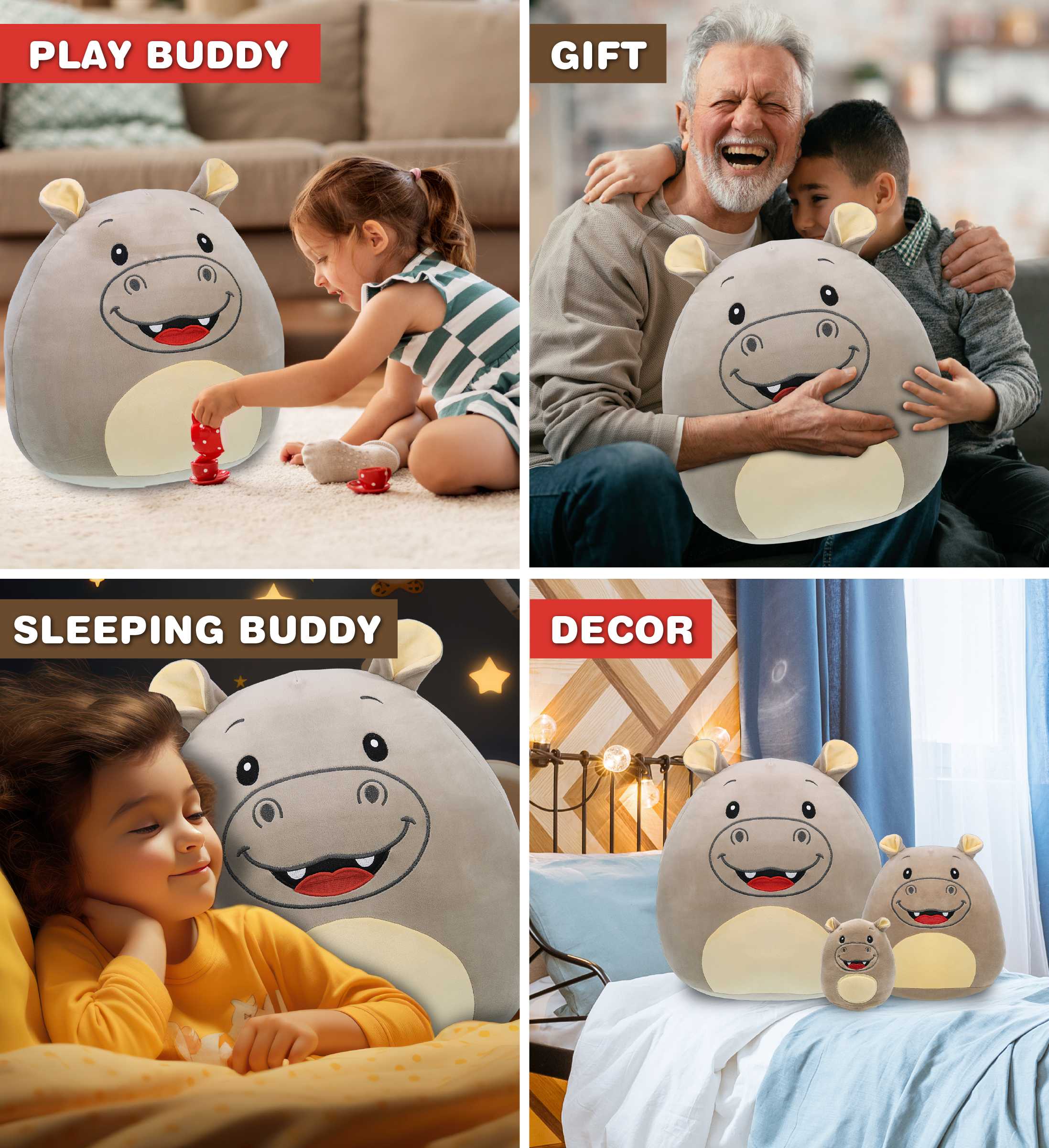 • Hippo Plush Pillow for Wildlife Animal Plush Enthusiasts – This hippo plush pillow is suitable for resting, lounging, and decorative placement. The large cushioned body can be used on beds, couches, and playroom floors. Designed for bedrooms, reading corners, and plush collections. Can be used as a wildlife animal pillow plush.