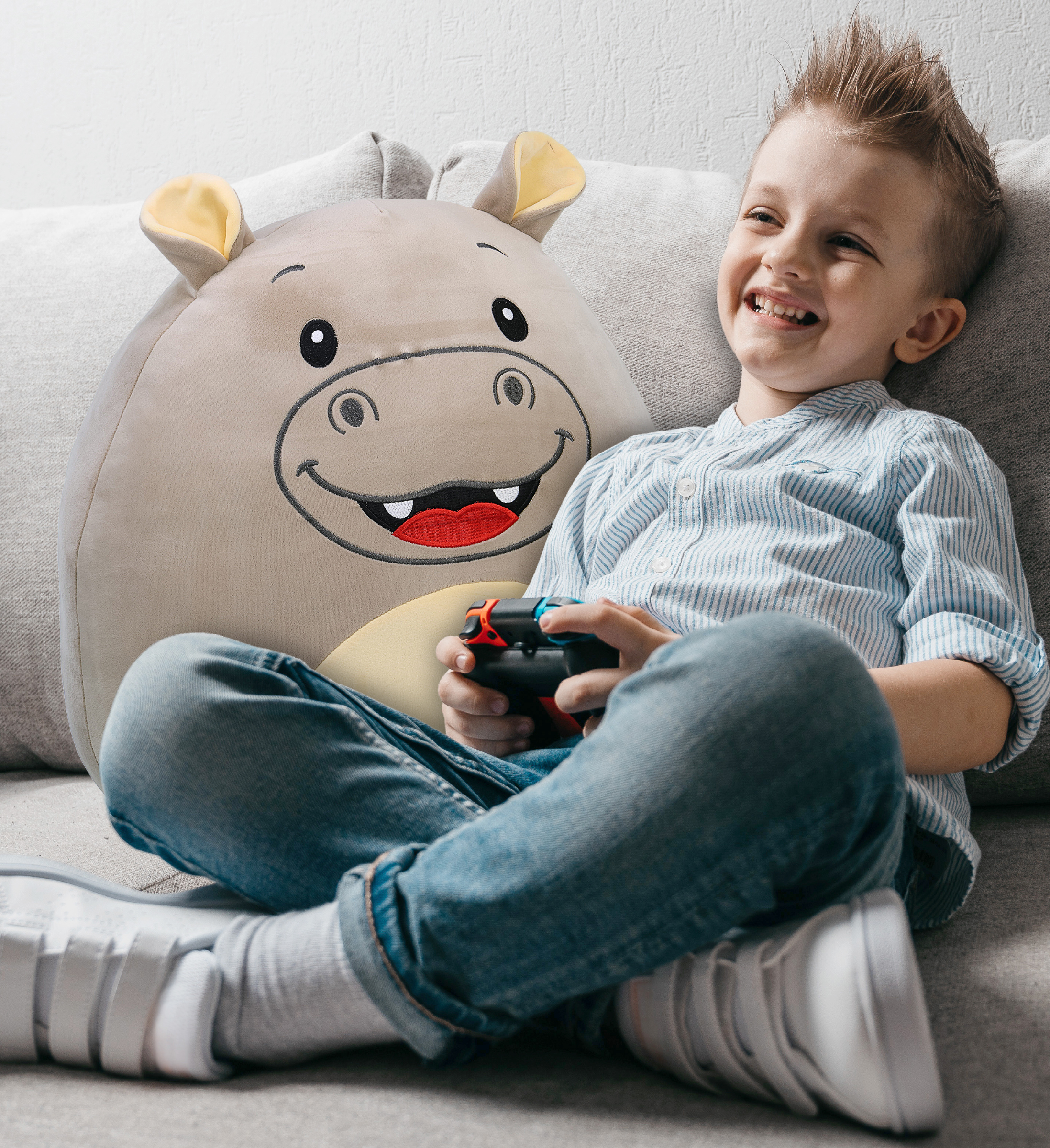 • This Snug Mooshies Hippo Plush Pillow Measures Approximately 17 Inches – This hippo plush is designed with a large, rounded pillow-style body for resting and lounging. The oversized size makes it suitable for hugging, leaning against, or using as a cushion. Its wide shape provides full-body support when placed on beds, sofas, or reading areas. Intended for indoor use and plush collections, it measures 16Lx13Wx17H inches.