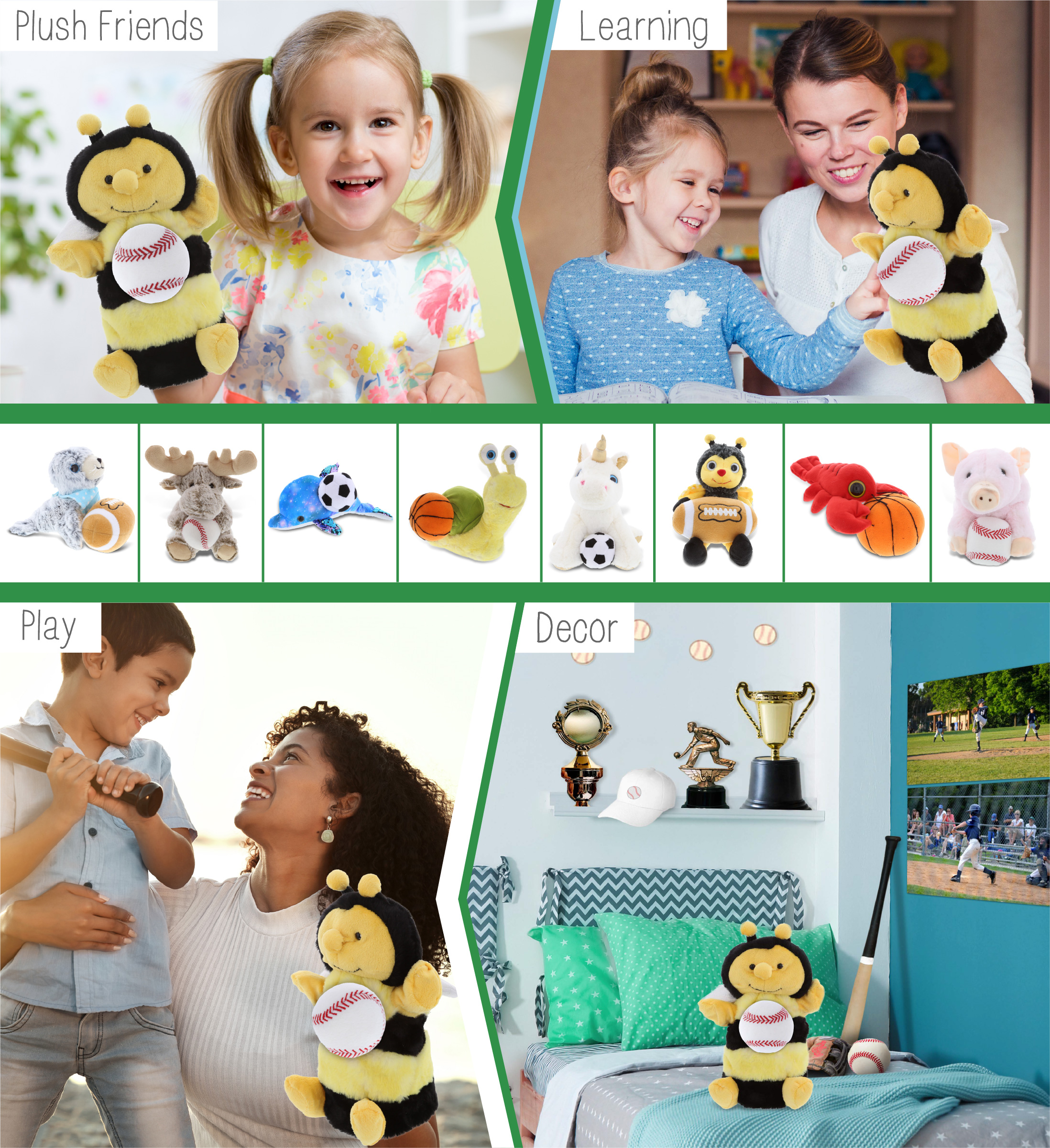 - The Honeybee with Baseball Plush Toy Is for Everyone Who Loves Baseball Toys – Anyone will love receiving a cute stuffed puppet with baseball plush. The girls and boys baseball toy and Honeybee Puppet will be loved by all ages, making it perfect gifts for boys who love baseball. Super soft honeybee stuffed puppets are timeless gifts for baseball players, or as baseball fan gifts, and for kids who love decorating their rooms with baseball stuff.