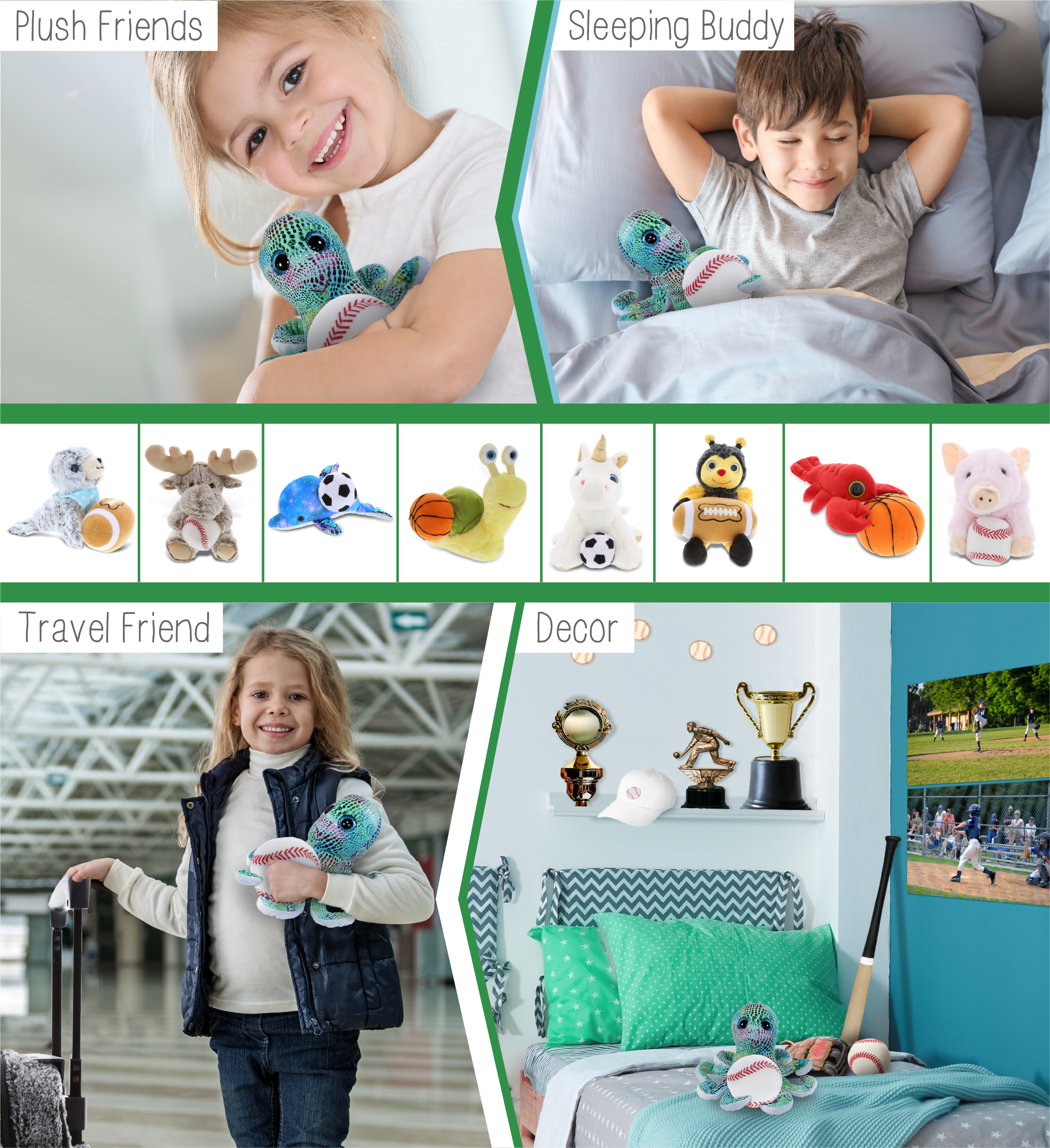 - Ideal Use for the Kids Baseball Plush and Stuffed Octopus – The octopus baseball stuffed animal makes a great addition to your kids baseball stuff for boys collection. Great gifts for boys who love sports and plush dolls. If you’re looking for the perfect baseball gift ideas for kids, then this stuffed octopus with baseball plush is the perfect choice. It’s the perfect stuffed animal baseball birthday gifts to give on any special occasion.