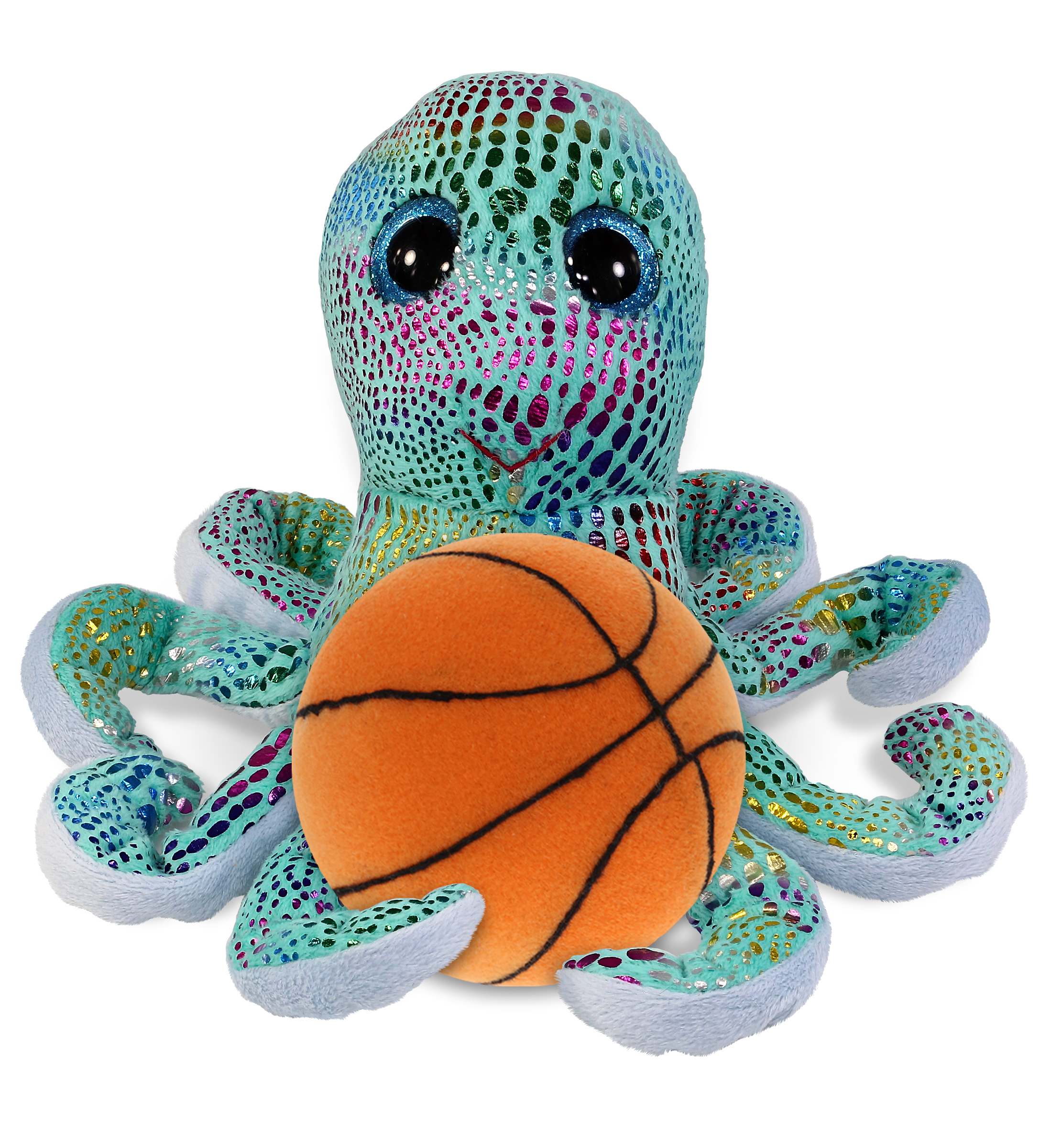 - Personalization, Customization, and Add-on Options – The Super Soft Sports Stuffed Animal Big Eye Iridescent Rainbow Octopus comes customized with a basketball plush. You can personalize your octopus plush toy with the name of your loved one, which we will imprint on the item. You also have the option to add some or all of the cool add-ons to make your plush gift extra special: 1) Gift Bag; 2) Tissue Paper; 3) Greeting Card.