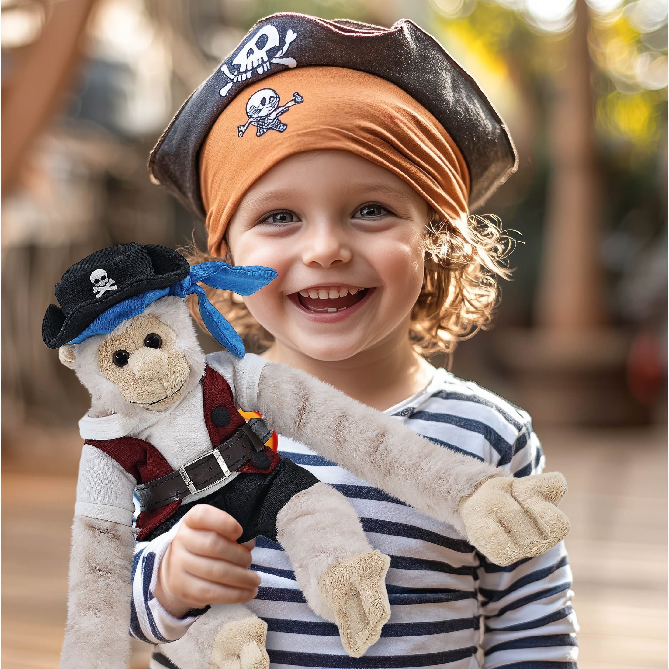 - Includes 1 DolliBu Plush Hanging White Squirrel Monkey Toy with Pirate Outfit – The stuffed animal squirrel monkey wears a pirate costume featuring a pirate vest, belt, shirt, pants, and pirate hat. Whether you’re collecting monkey toys or hunting for pirate stuff for kids. It’s the perfect combo of silly plush fun and dress-up adventure. The cute pirate plush monkey measures approximately 21Lx3.5Wx6.5H inches. Best for kids ages 3 and up.