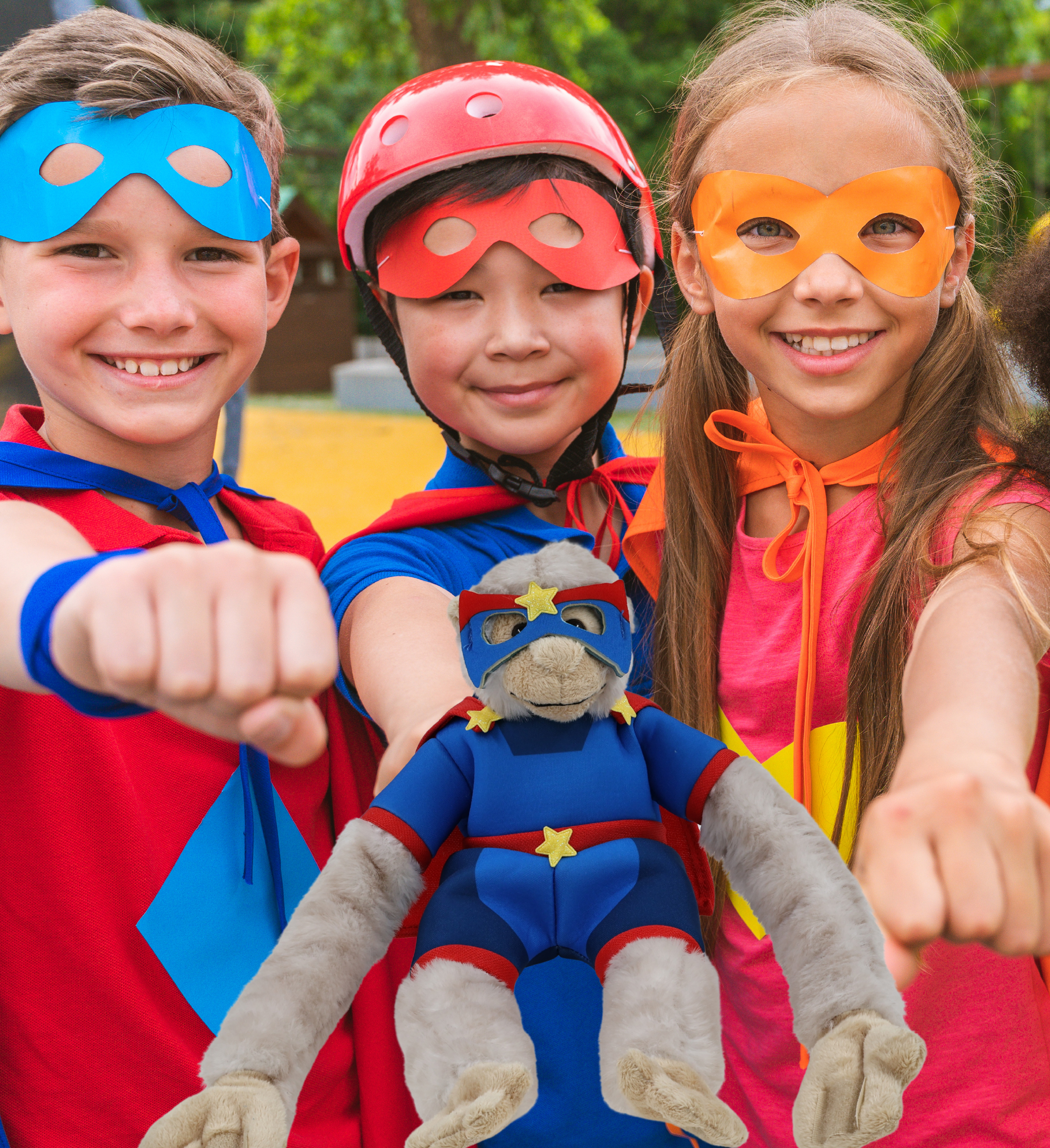 - Features a White Squirrel Monkey Wearing Superhero Stuffed Animal Clothing – With a mask, suit, and cape, this monkey stuffed plush toy comes with a playful and stylish look that results in two fun themes: wildlife and superheroes! Whether you’re searching for super heroes plush toys, stuffed animal outfits, or monkey figures with personality, this cute plush monkey adds charm to any toy shelf, room décor, or Halloween plush collection.