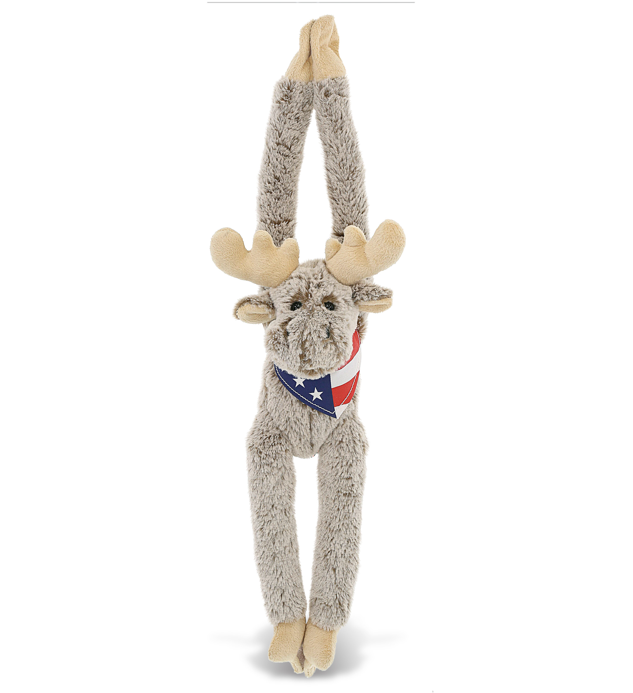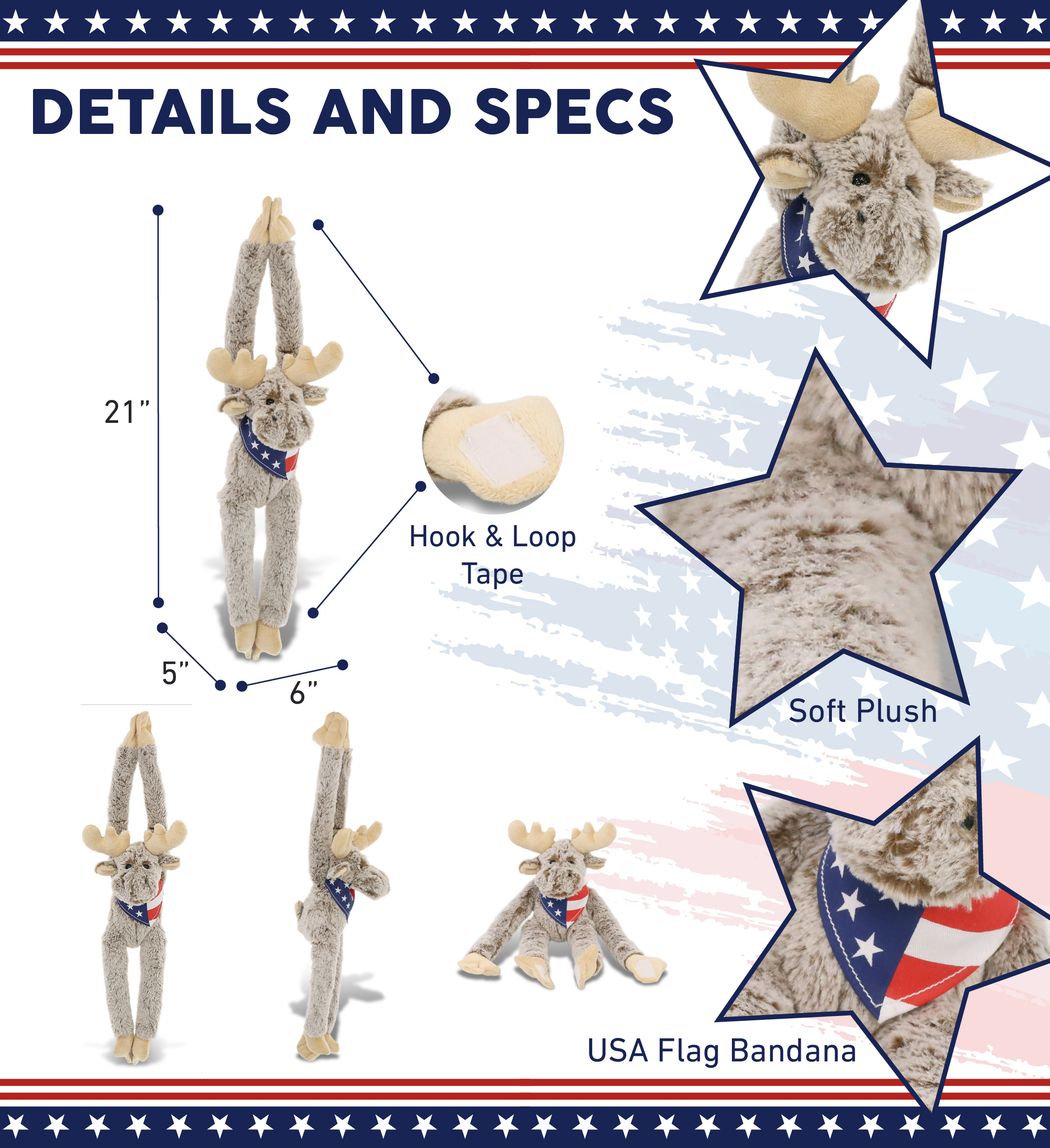 - Includes 1 DolliBu Long Arms Moose Toy with USA Flag Bandana Dress Up Set – The stuffed animal moose arrives with a removable red, white and blue USA flag bandana, making it a standout among stuffed animals with clothes. Turn your classic teddy bear moose into collectible patriotic stuffed animal perfect for celebrating USA holidays. The moose stuffed animal measures 21Lx6Wx5H inches and is for kids ages 0 and up.