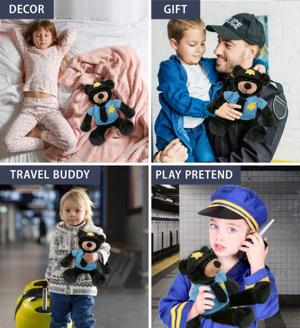 - IDEAL USE FOR THE CUTE COP TEDDY BEAR FOR KIDS – Give your loved ones DolliBu’s customized stuffed animal with Police teddy bear clothes. Sending a back-up black bear in police uniform to your kids is a great way to make pretend play more fun. Use this cute police doll black bear toys for kids to teach them to respect police officers and be comfortable with them. A perfect police happy birthday gift for kids who aspire to be police officers.