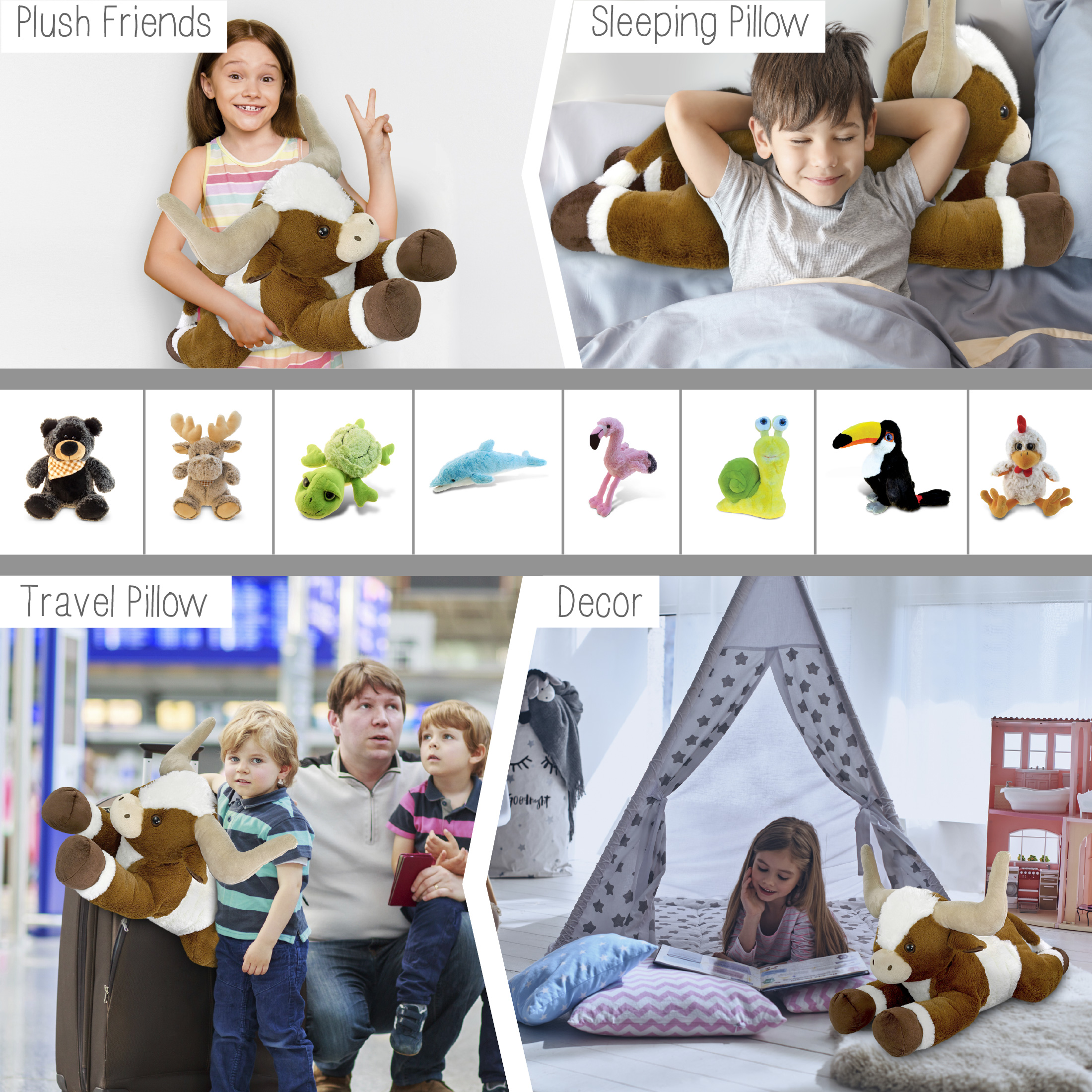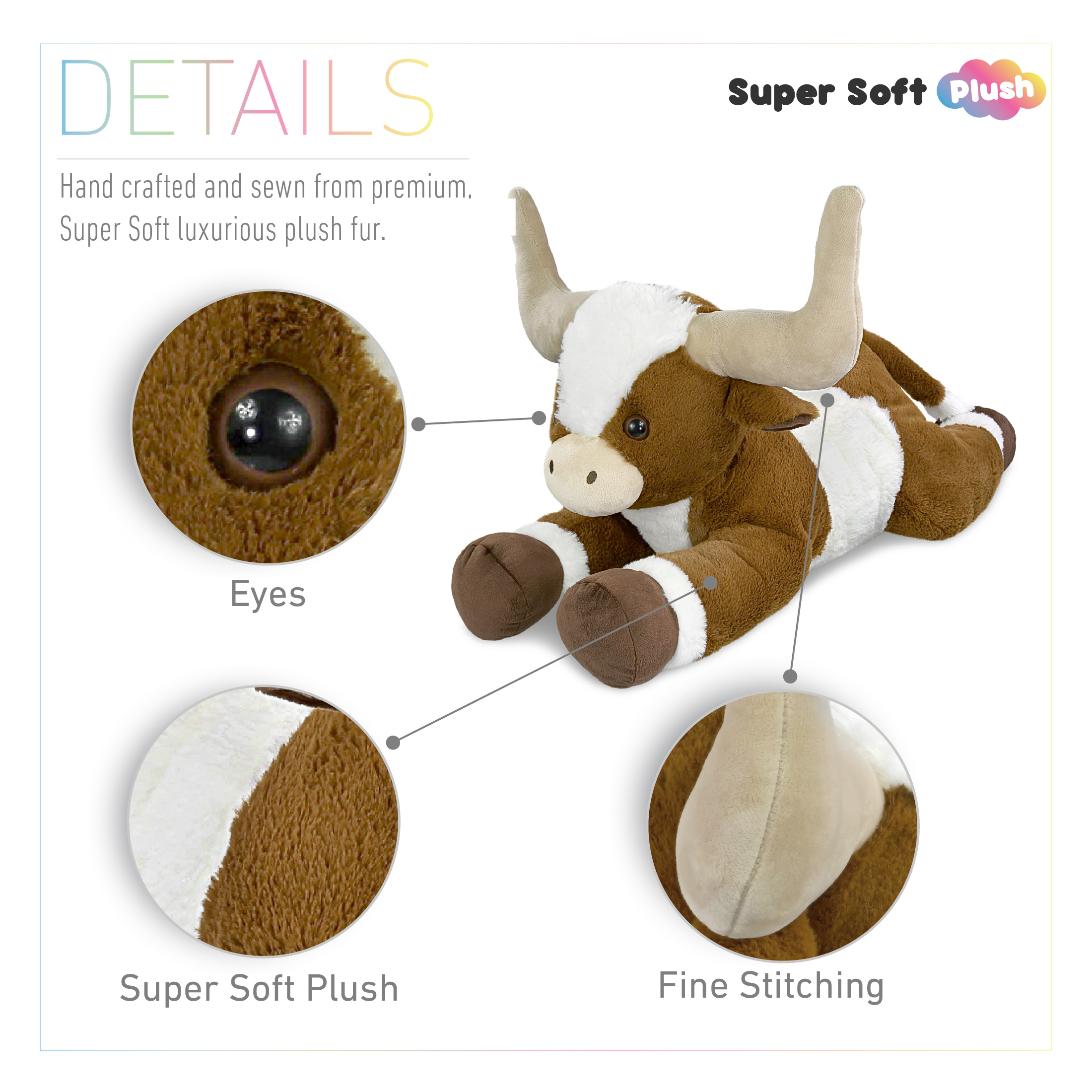 - Measures Approximately 27Lx13Wx13H Inches – The Longhorn stuffed animal is the perfect size for cuddling and hugging. The white and brown fluffy stuffed animal fits easily on your display shelf of wild animals. The compact shape of this longhorn animal toy makes it perfect for toddlers and kids to carry around, while this stuffed plush longhorn offers enough softness and bulk for hugging. A cozy bed companion or cuddle buddy for your little ones.