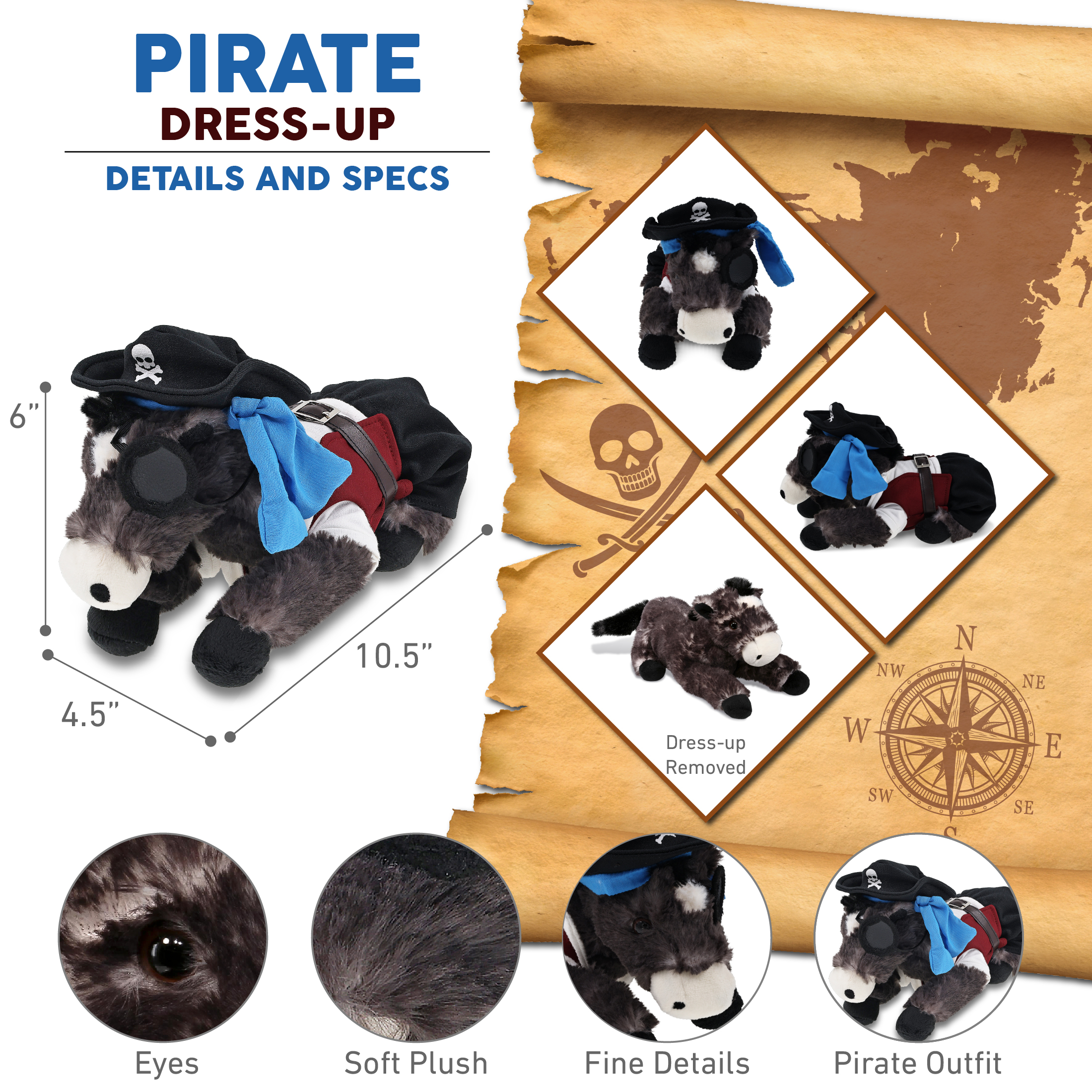 DolliBu Lying Black Horse Stuffed Animal With Pirate Dress Up and Name Personalization – Sea Adventure Plush Toy with Cute Pirate Costume – Hat, Shirt, Pants, Eye Patch, Belt – 10.5 Inches