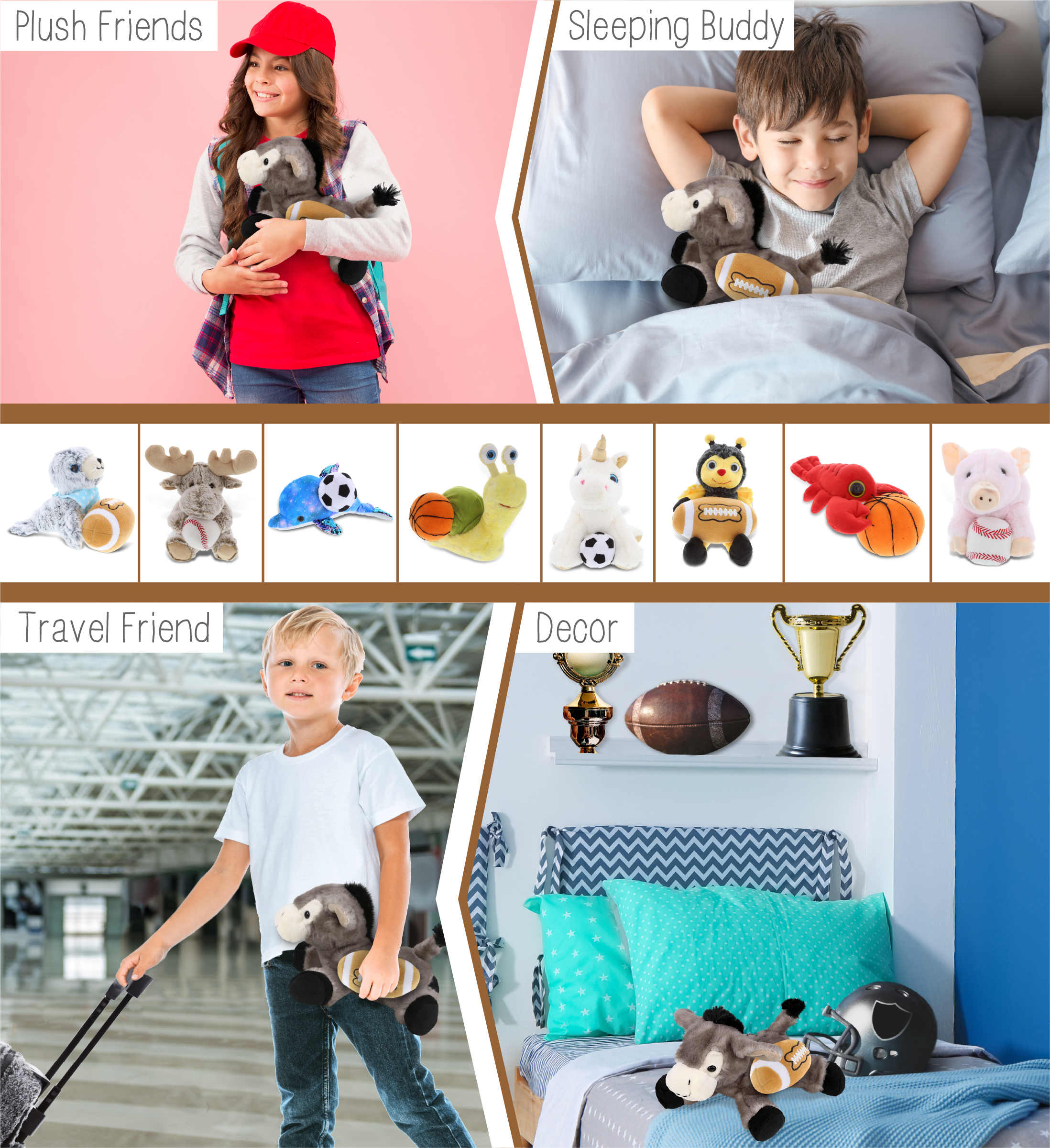 - Personalization, Customization, and Add-On Options – This Super Soft Sports Stuffed Animal Lying Grey Donkey comes customized with a football plush. You can personalize it with the name of your loved one imprinted on the item. You also have the option to add some or all of the cool add-ons to make your gift extra special: 1) Gift Bag; 2) Tissue Paper; 3) Greeting Card.
