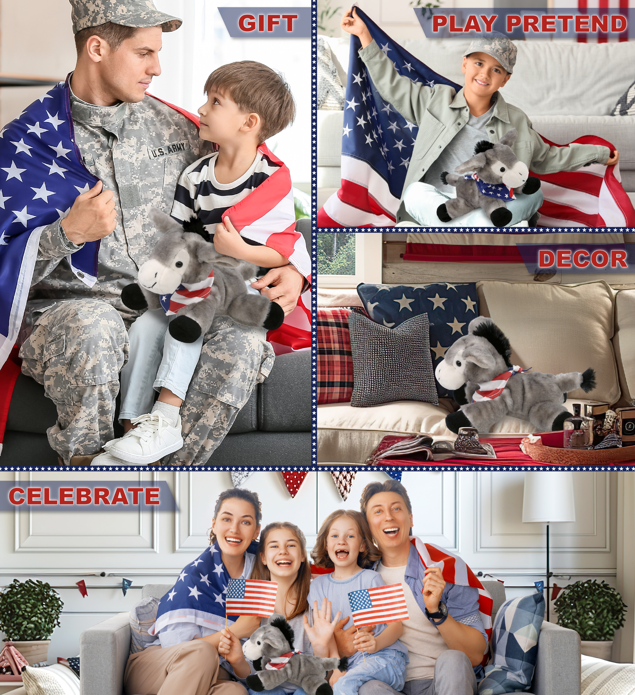 • Perfect Plush Animal for Those Who Love Patriotic Toys for Kids and Adults – Perfect toy donkey gift for birthdays, holidays and patriotic events. Ideal for kids, veterans, or anyone who loves unique plushies! Whether you’re shopping for USA teddy collectibles, donkey themed gifts, or cute teddy bear plush toys, this donkey fits the bill. Great for gifting on Fourth of July, Memorial Day, or any celebration of American pride.