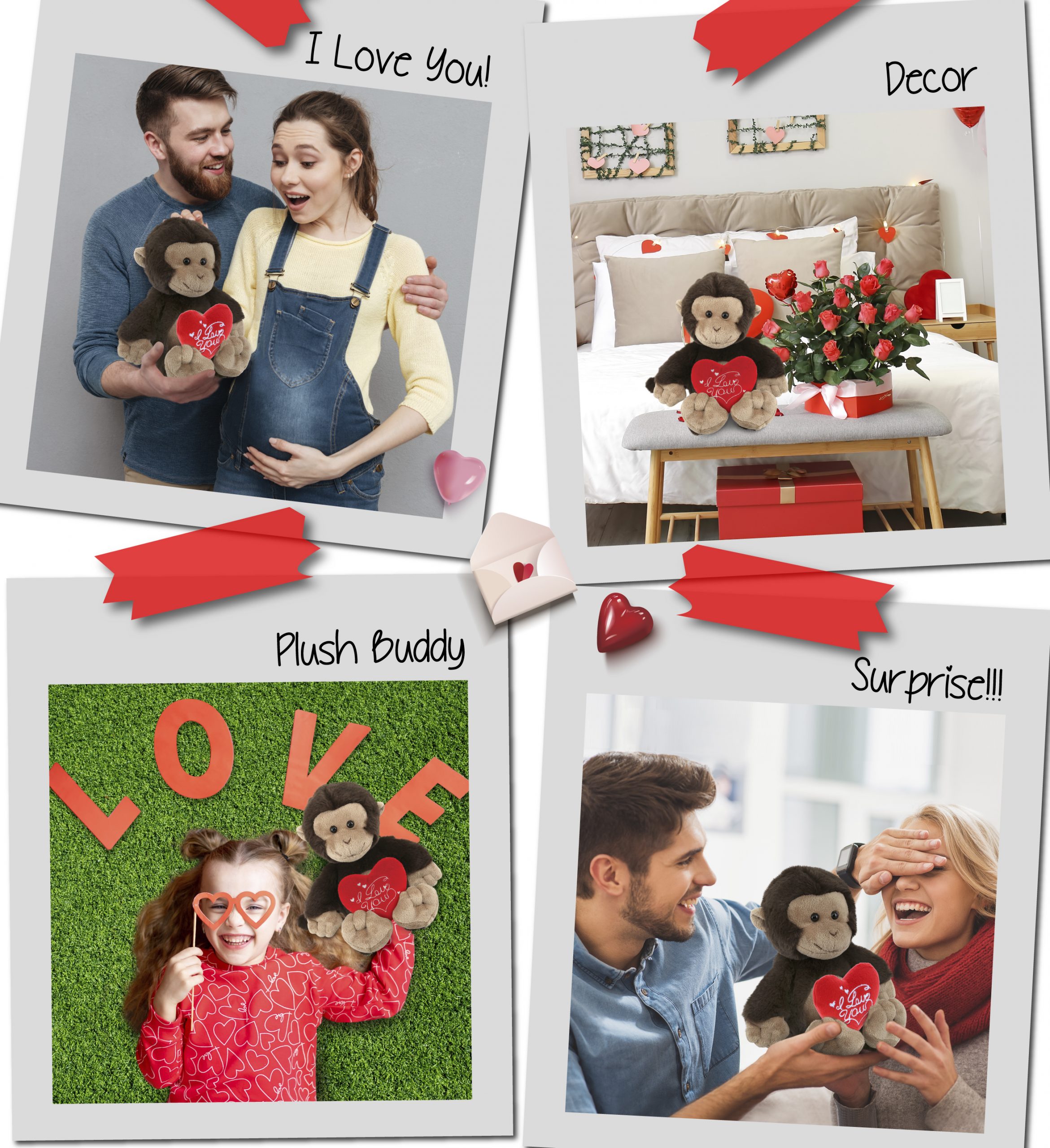 - IDEAL USE FOR MONKEY VALENTINES STUFFED ANIMAL – Surprise your loved one with a sentimental plush on Valentine’s Day, birthday, anniversary, or on any occasion to make any day extra special. Gifting plush monkey with an I Love You message is a cute way to express your love. Make occasions memorable and surprise them with a huggable monkey plush to display in any bedroom or office or be a cuddly gift in a long-distance relationship.