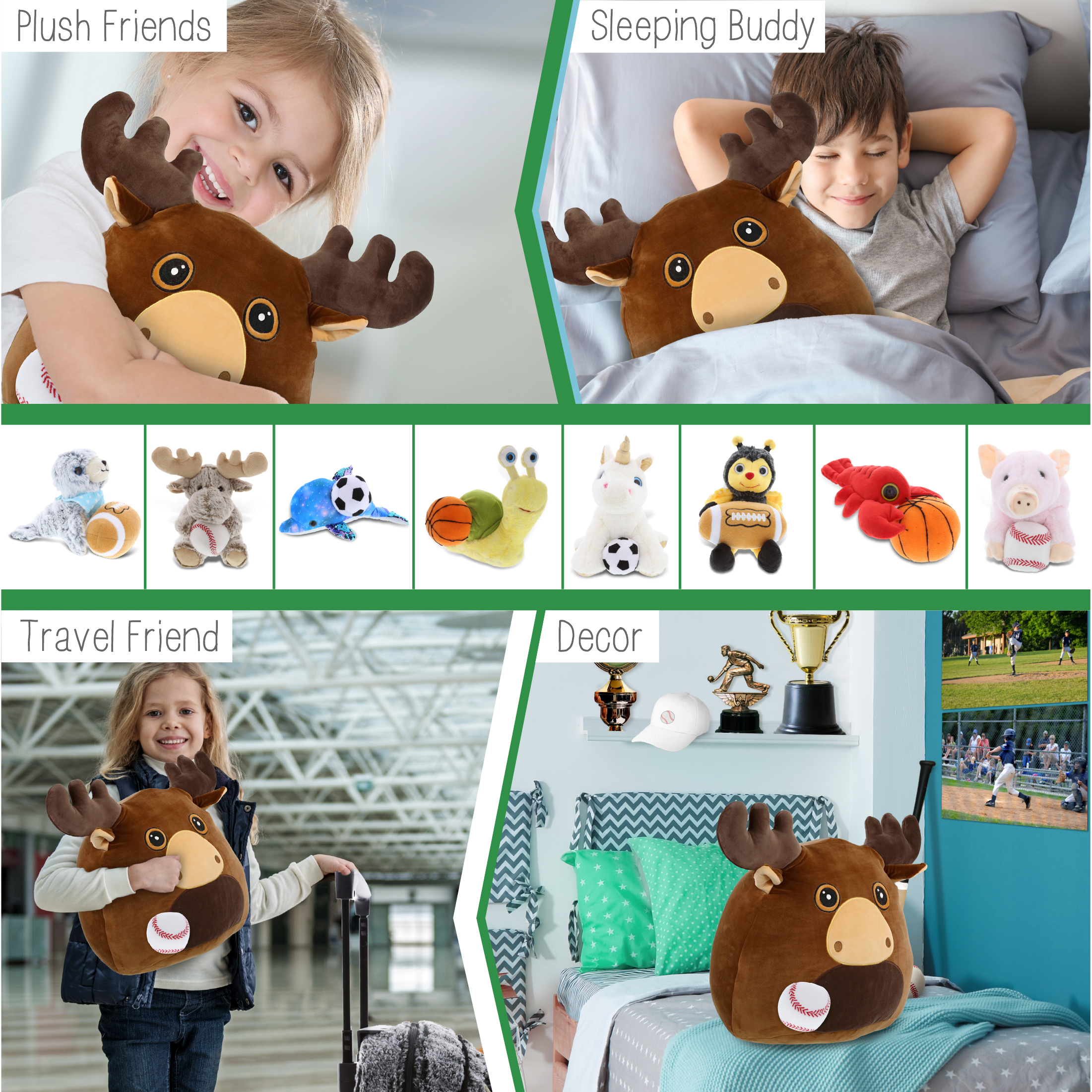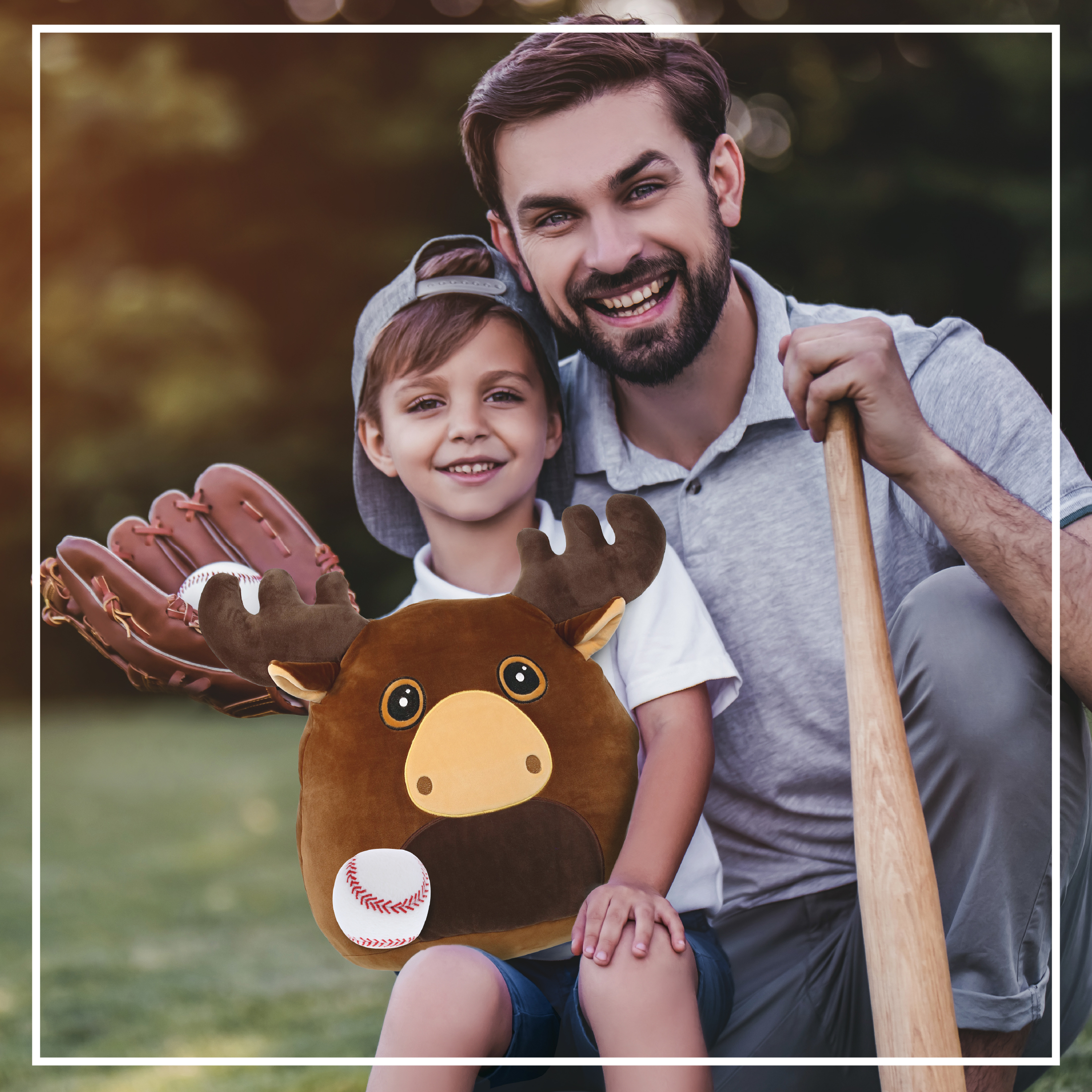 - The Moose with Baseball Plush Toy Is for Everyone Who Loves Baseball Toys – Anyone will love receiving a cute stuffed toy with cool baseball plush. The girls and boys baseball toy and moose will be loved by all ages, making it perfect gifts for boys who love baseball. Snug-Mooshies Moose stuffed animal are timeless gifts for baseball players, or as baseball fan gifts, and for kids who love decorating their rooms with baseball stuff.