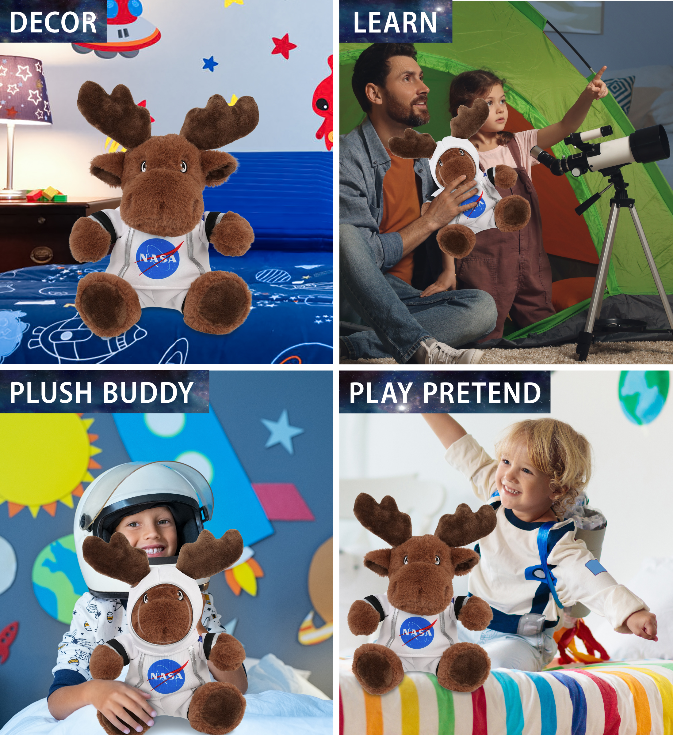 - Ideal Use for The Astronaut Stuffed Toy – Spark everyone’s curiosity about space with the Moose Astronaut Toy. Transform any space bedroom decor for boys or girls and be ready to embark on your NASA space journey. The Astronaut Doll makes a perfect gift for kids celebrating their birthday with a space themed party. Collectors of NASA and enthusiasts of space will surely adore this stuffed moose astronaut figure.