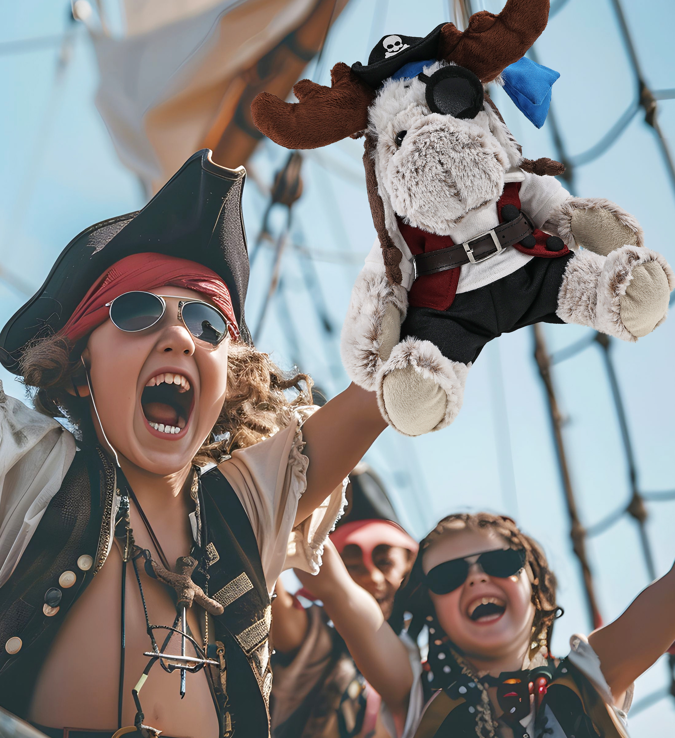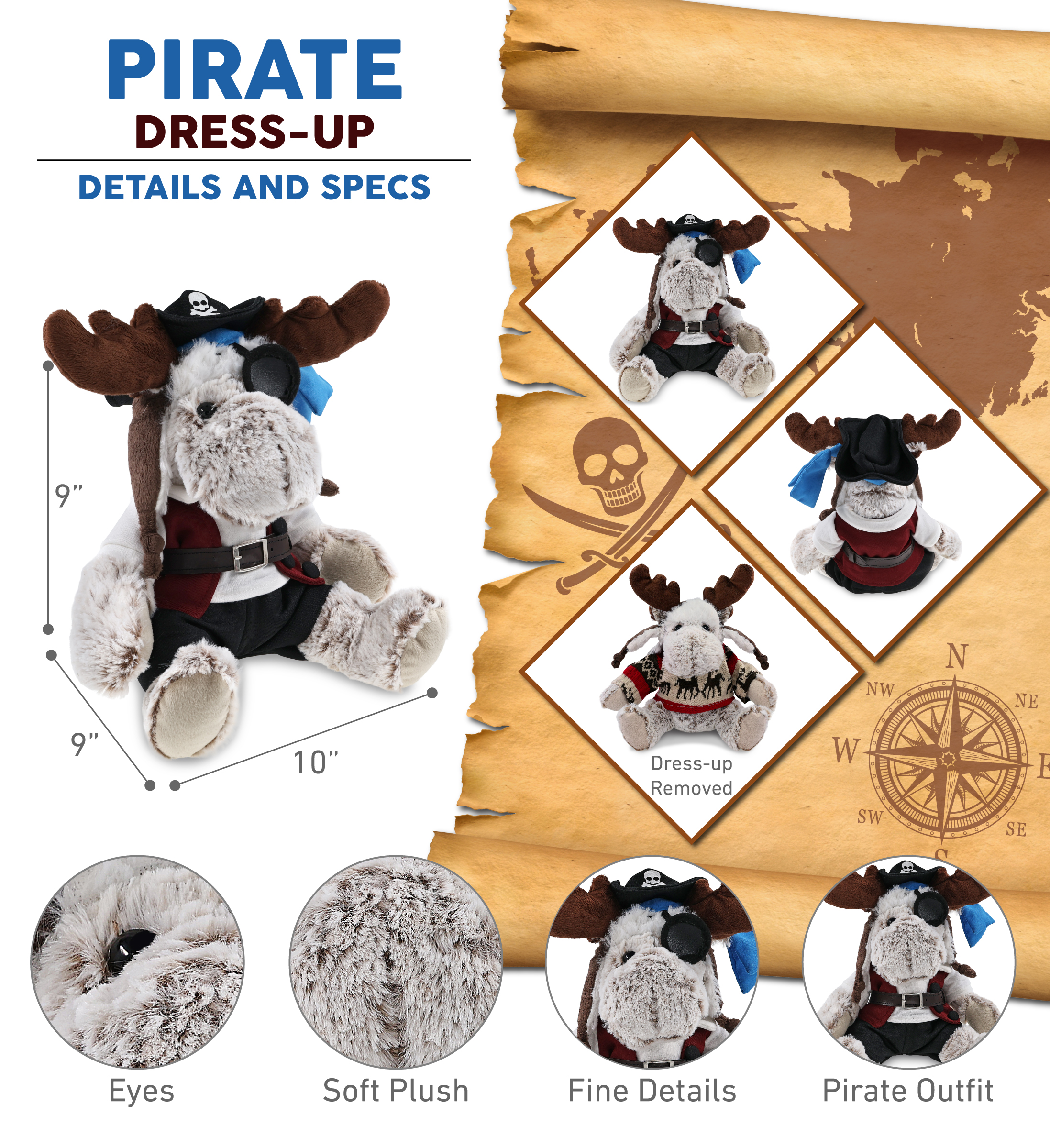 - Includes 1 DolliBu Moose with Clothes Stuffed Toy with Pirate Outfit – The moose toy wears a pirate teddy bear costume featuring a pirate vest, belt, shirt, pants, and pirate hat. Whether you’re collecting moose toys or hunting for pirate stuff for kids, this plush is the perfect combo of silly plush fun and dress-up adventure. This cute pirate stuffed animal moose measures approximately 10Lx9Wx9H inches and is for kids ages 3 and up.