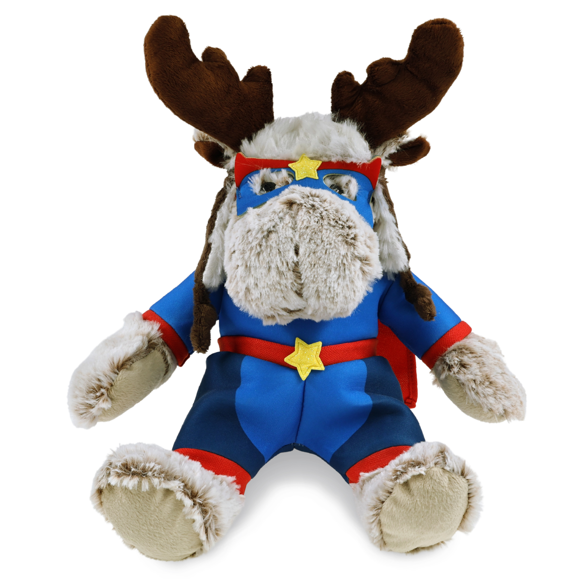 - Personalization, Customization, and Add-On Options – The moose with clothes stuffed animal comes dressed in a full superhero outfit, complete with eye mask, suit with cape, and star details. Make your super hero moose toy special by adding a personalized name, which we will imprint onto the plush. You can also customize your plush hero toy by adding any of our add-ons to create the perfect gift: 1) Gift Bag 2) Tissue Paper 3) Greeting Card.