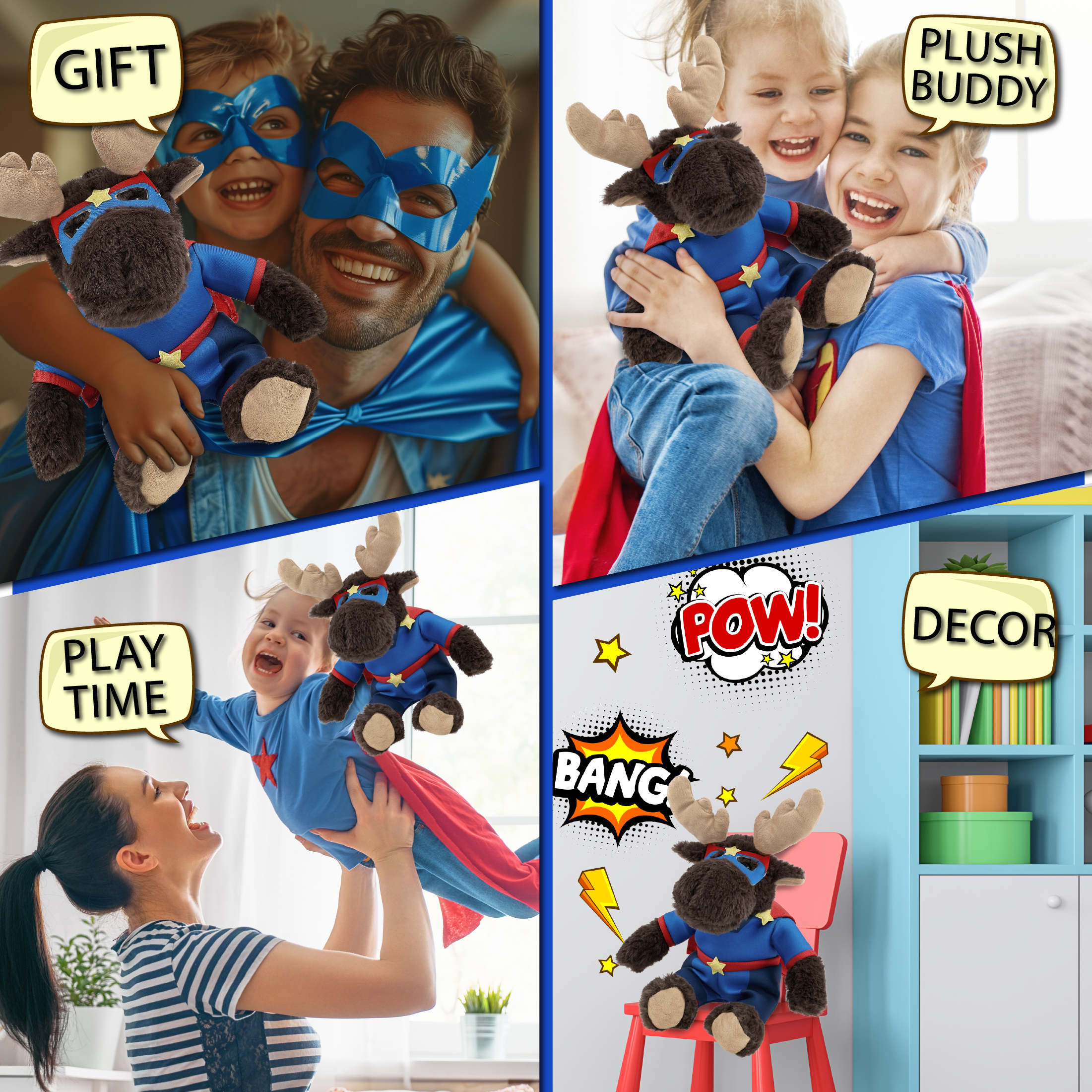- Perfect for Everyone Who Loves Superheroes – Everyone who loves customizable stuffed animal toys will be thrilled to have a super hero stuffed moose. Whether it’s a cute stuffed animal gift or a superhero teddy for a super hero themed room, this plush makes a thoughtful surprise. Ideal for birthdays, Halloween, or everyday fun. Perfect to bring along on pretend-play save-the-day adventures.