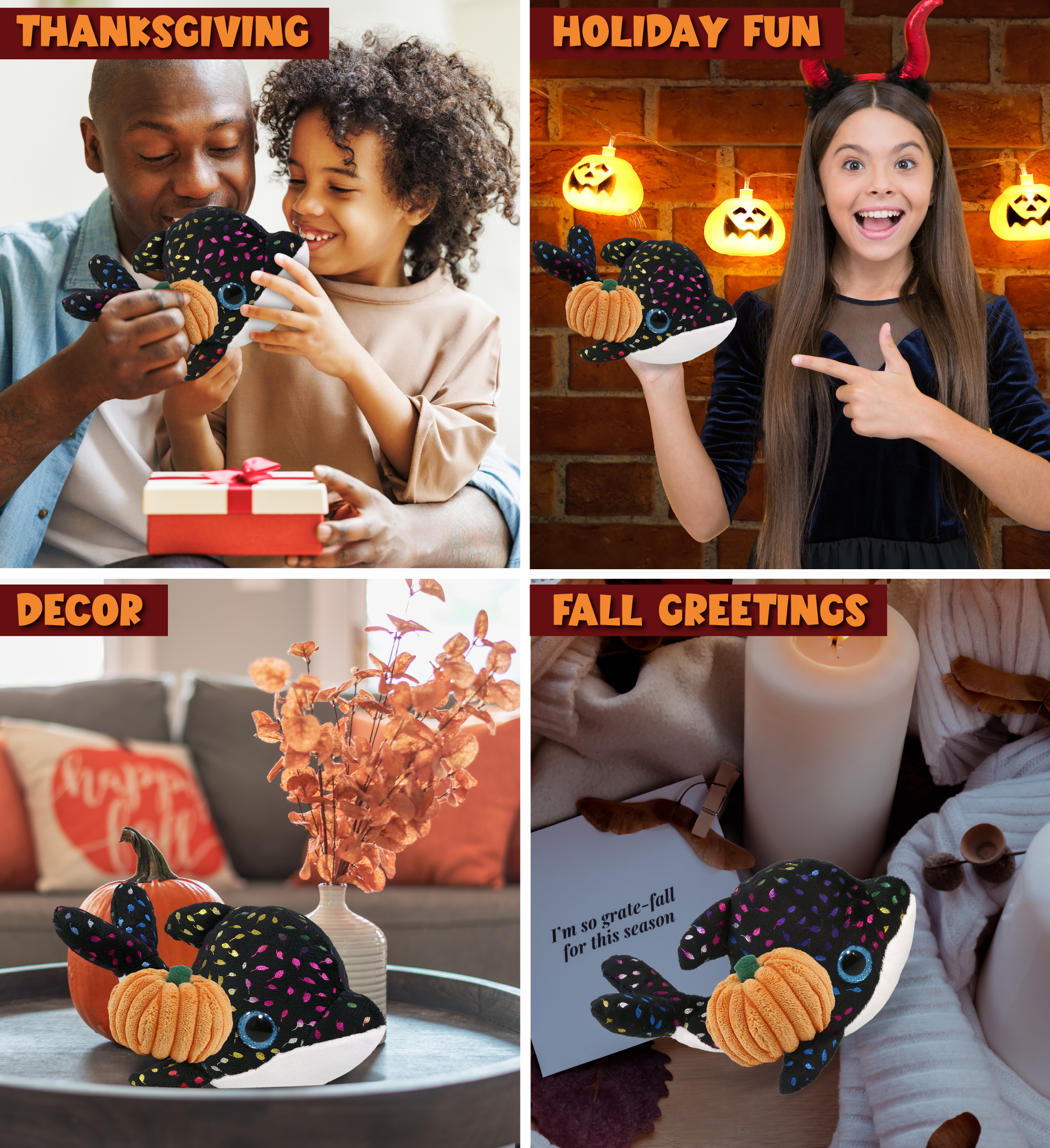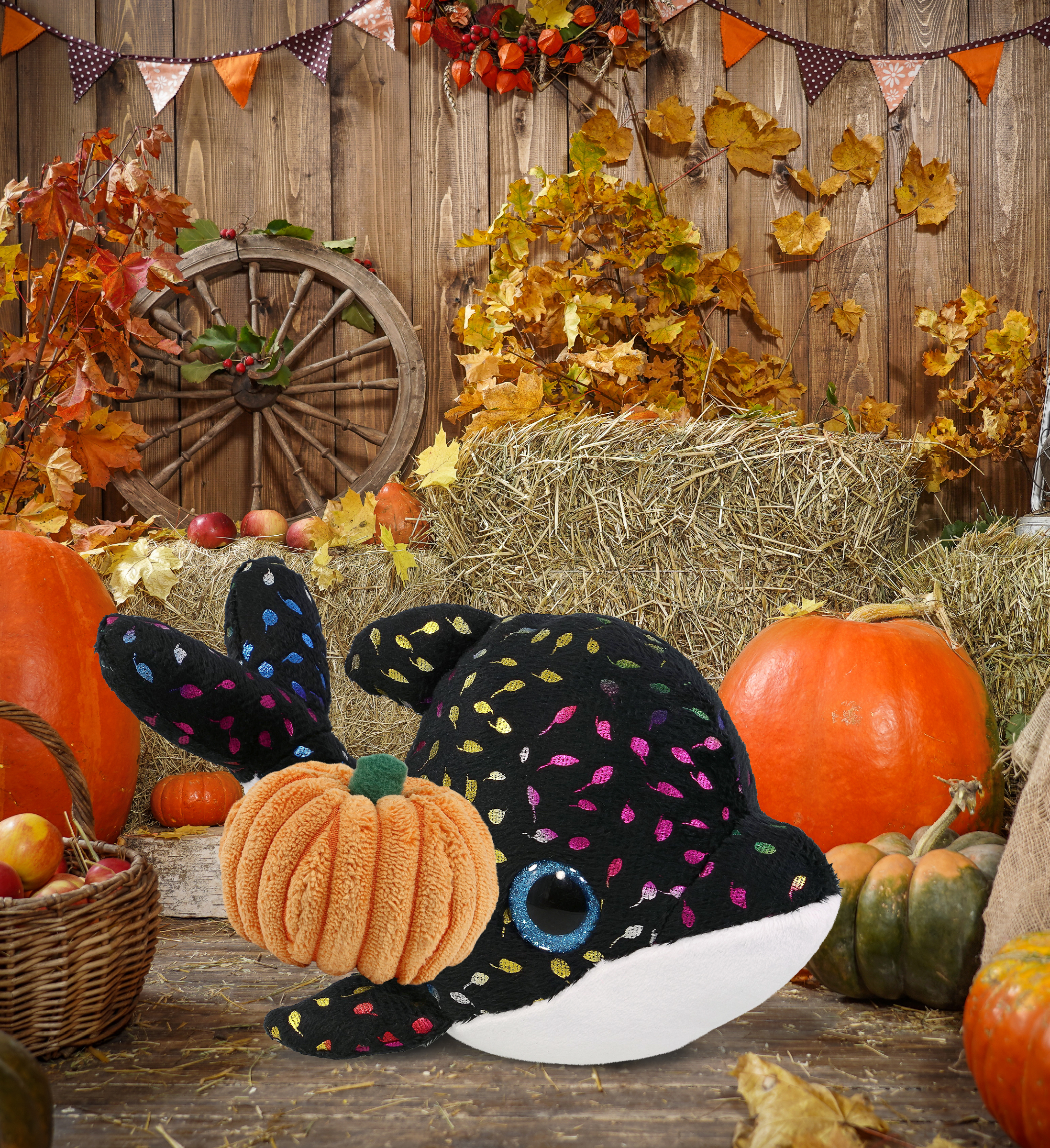 - The Orca Whale Pumpkin Plush Toy Is for Everyone Who Loves Halloween Toys – The Big Eye Plush Orca Whale stuffed animal pumpkin plush toy designed with fall plush theme makes for sweet Halloween kids gifts, babys first Halloween gift and Thanksgiving gifts for friends and family. Welcome spooky month and share the fun of trick-or-treating with loved ones by gifting them a cute custom stuffed animal whale plush with a pumpkin soft toy.