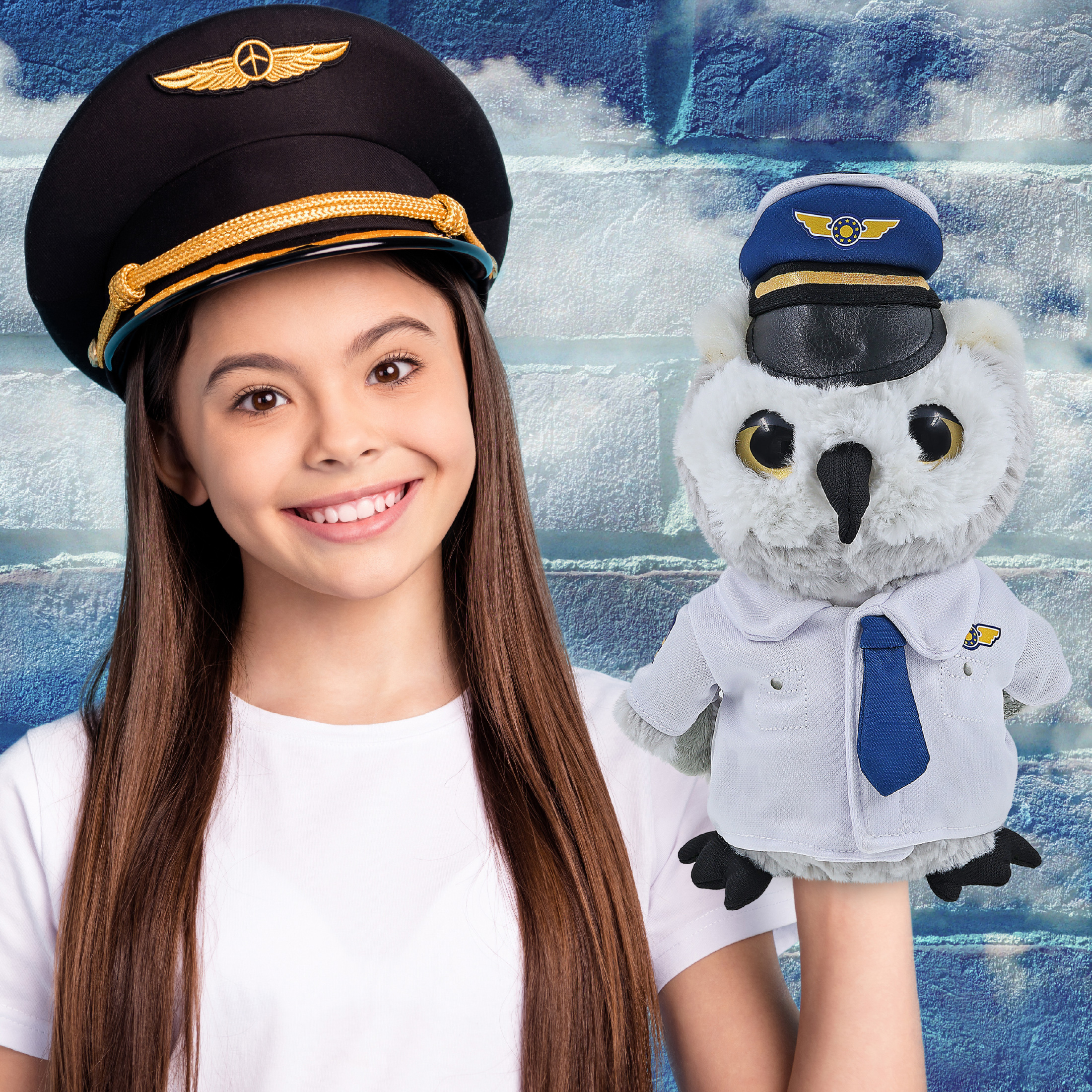- Features a Cute Owl Plush with Pilot Uniform Costume – This owl doll features ready-to-fly pilot clothes for teddy bears. The owl bird plush features cool details and realistic design, while the pilot career dress up costume features a white button-up aviation uniform shirt with printed pilot wings and sleeve stripes, blue pants with an elastic waistband, a black belt, a matching blue tie, and a classic pilot captain hat.