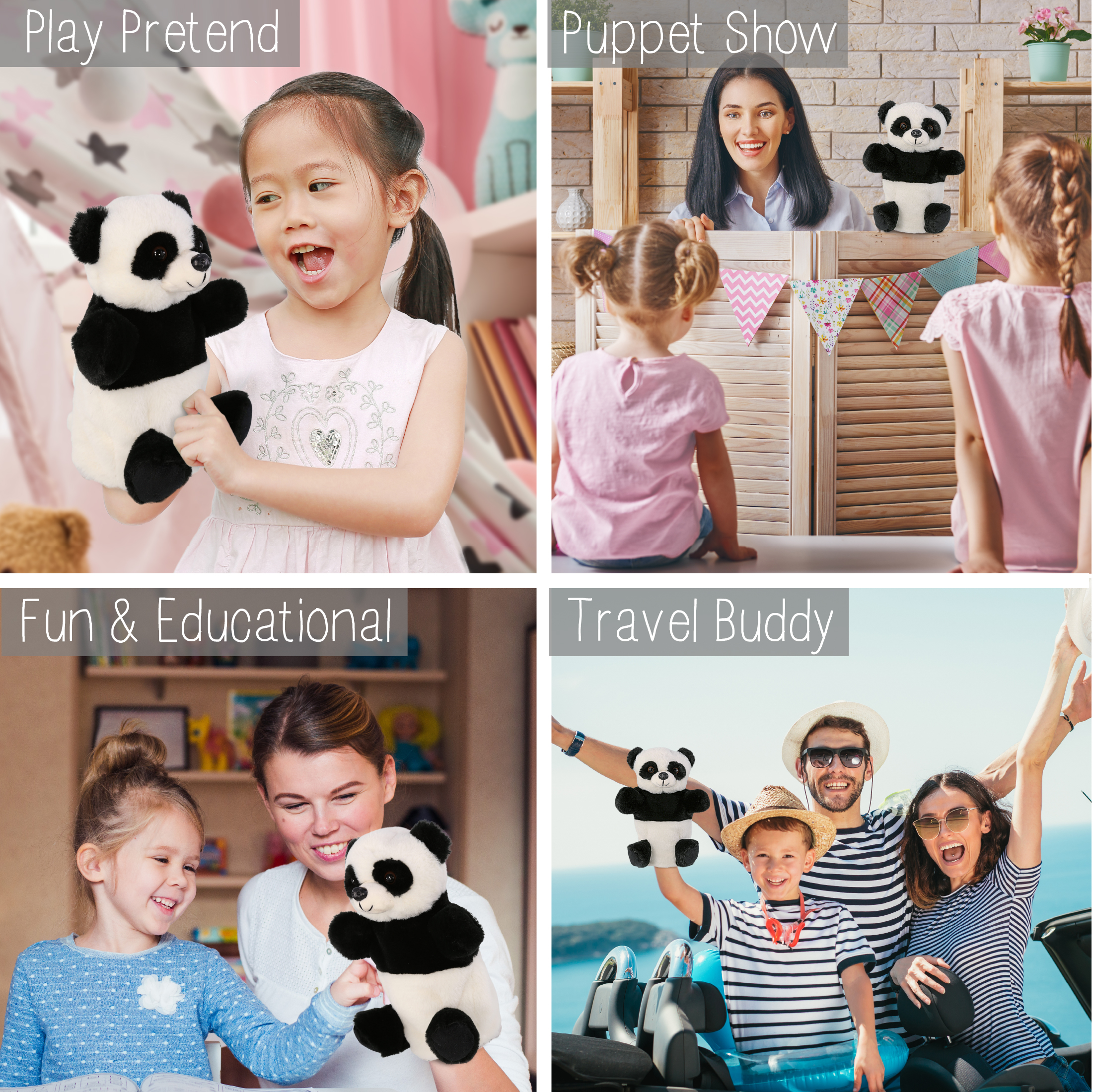 - Perfect Animal Hand Puppets for Kids – The friendly panda animal puppets for toddlers 1-3 and up makes a great companion for learning and pretend play. Hand puppet for kids help parents and teachers create fun learning environment for kids. Collectors of hand puppets for adults and kids and panda toys will surely love to add the cute panda plush to their collections, and they make great panda gifts for boys and girls who love puppet animals.