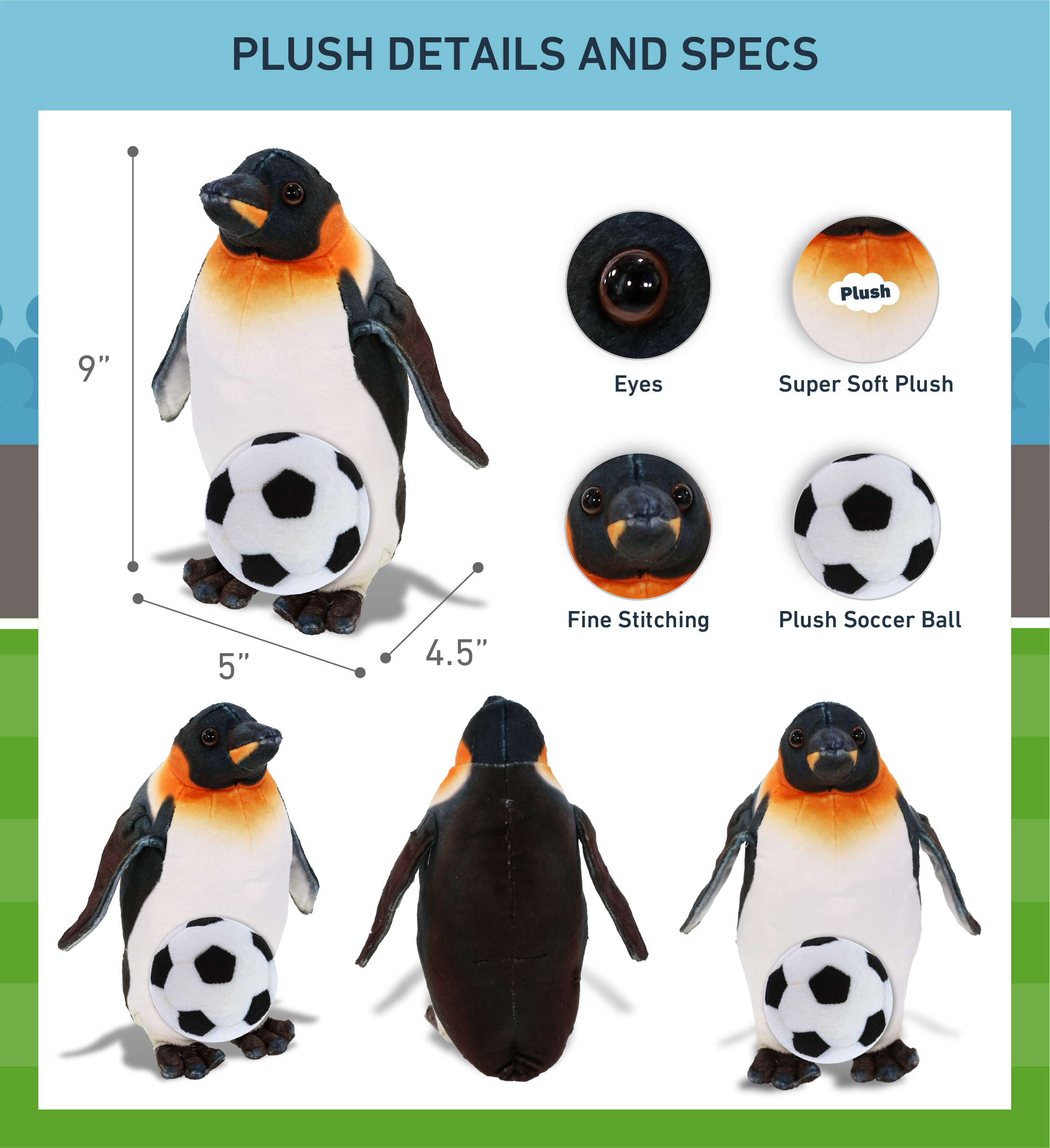 - Included with the Purchase of the Cute Penguin Plush – Includes 1 DolliBu Wild Collection Penguin, a super soft stuffed animal with a soccer ball plush, decorated with realistic features of a cute penguin. The penguin’s body with a sports gift ball plush makes the plush perfect for cuddles. The penguin plush toy displays cool details of a penguin. The eyes make the critter so charming. The penguin plush toy buddy measures 5Lx4.5Wx9H inches.